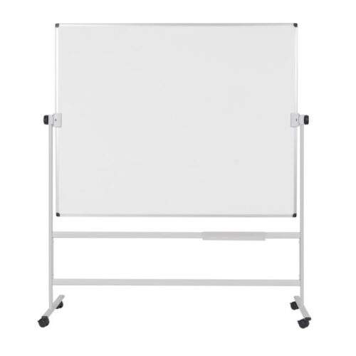 Základná rotačná tabuľa na príležitostné použitie v kancelárii, triede alebo v priemyselnom prostredí. Vhodná na písanie popisovačmi na tabuľu stierateľnými za sucha. Obojstranný, magnetický, lakovaný oceľový povrch dosky. Hliníkový rám so sivými plastovými rohovými krytkami. Upevnený na robustnom a mobilnom stojane s otočnou osou. Súčasťou balenia je odkladacia lišta. Rozmery v × š : 100 × 150 cm.