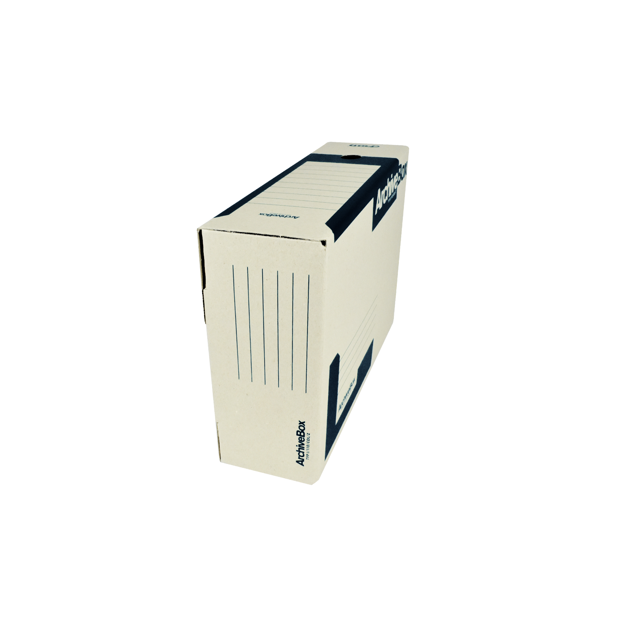 Archívny box z hladkej lepenky na uloženie záznamov do 25 rokov. Používa sa pri rozdelení agendy, účtovných rokov alebo ako firemná farba. Možnosť prehľadného popisu, uloženie v troch polohách. Vhodný v kombinácii so skupinovým boxom – možnosť vložiť 5 boxov I/ 75 alebo kombináciu boxov I/ 50, I/ 75 a I/ 110. Rozmery 110 × 330 × 260 mm. Dodávaný v rozloženom stave. Väčšie balenie 25 ks.