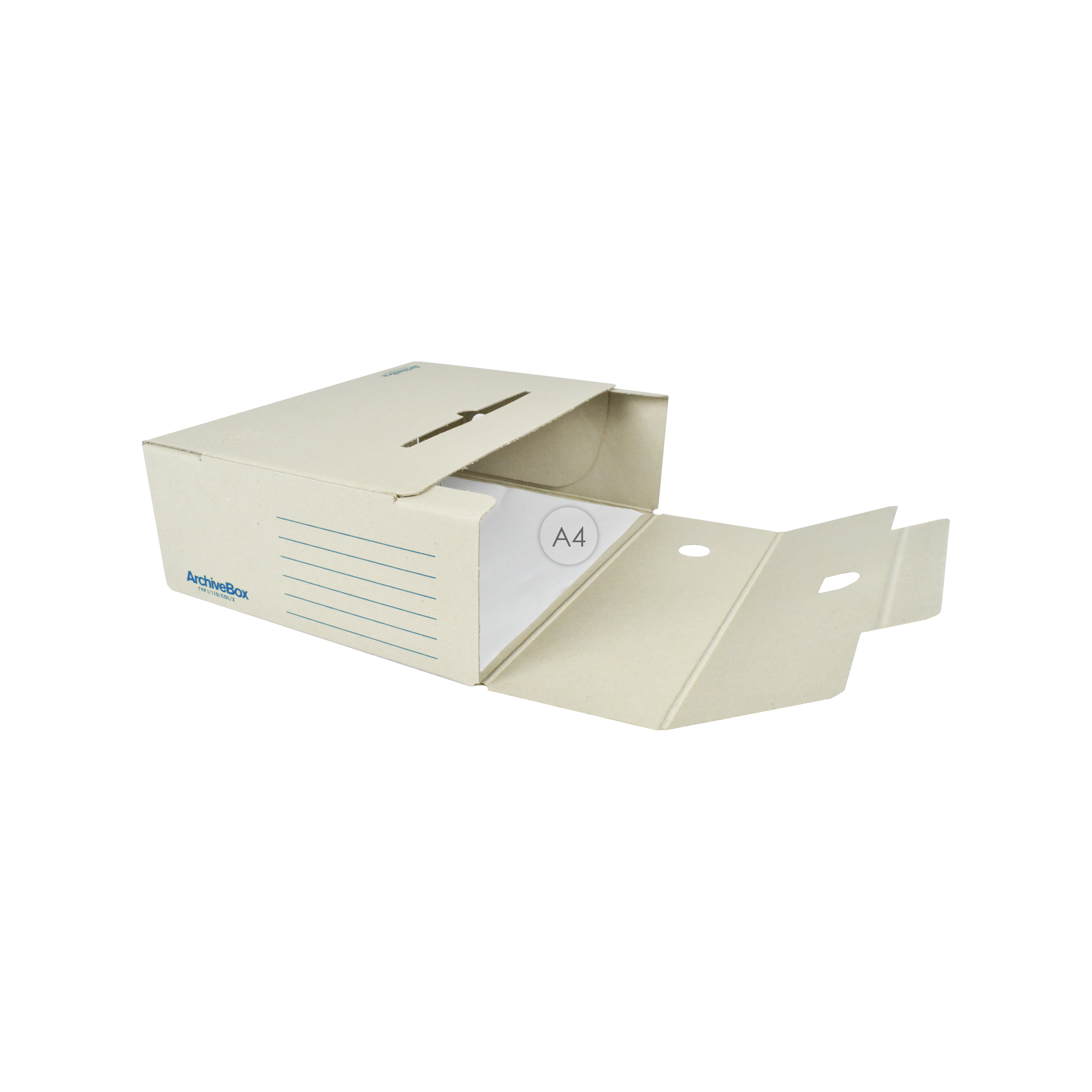 Archívny box z hladkej lepenky na uloženie záznamov do 25 rokov. Používa sa pri rozdelení agendy, účtovných rokov alebo ako firemná farba. Možnosť prehľadného popisu, uloženie v troch polohách. Vhodný v kombinácii so skupinovým boxom – možnosť vložiť 5 boxov I/ 75 alebo kombináciu boxov I/ 50, I/ 75 a I/ 110. Rozmery 110 × 330 × 260 mm. Dodávaný v rozloženom stave. Väčšie balenie 25 ks.