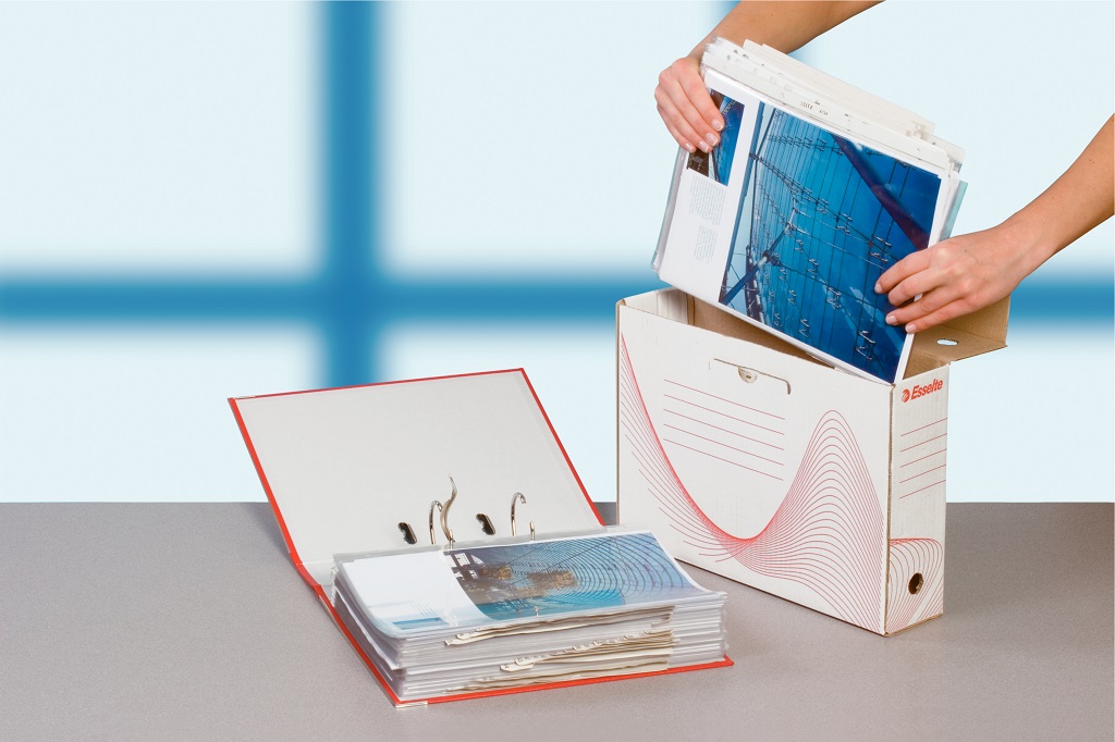 Archívny box z recyklovaného kartónu vo sviežej farbe VIVIDA na archiváciu dokumentov do formátu A4 s otvorom na ľahkú manipuláciu. Predtlač na popis na dlhšej i kratšej strane umožňuje skladovanie vo vodorovnej aj zvislej polohe. Box je využiteľný samostatne alebo v kombinácii s archivačnými krabicami. Väčšie balenie 25 ks.