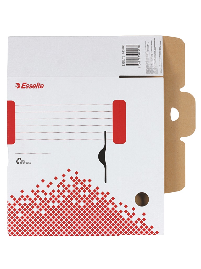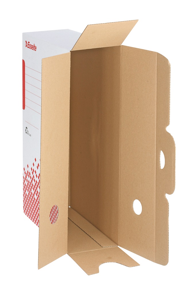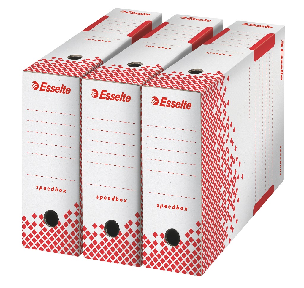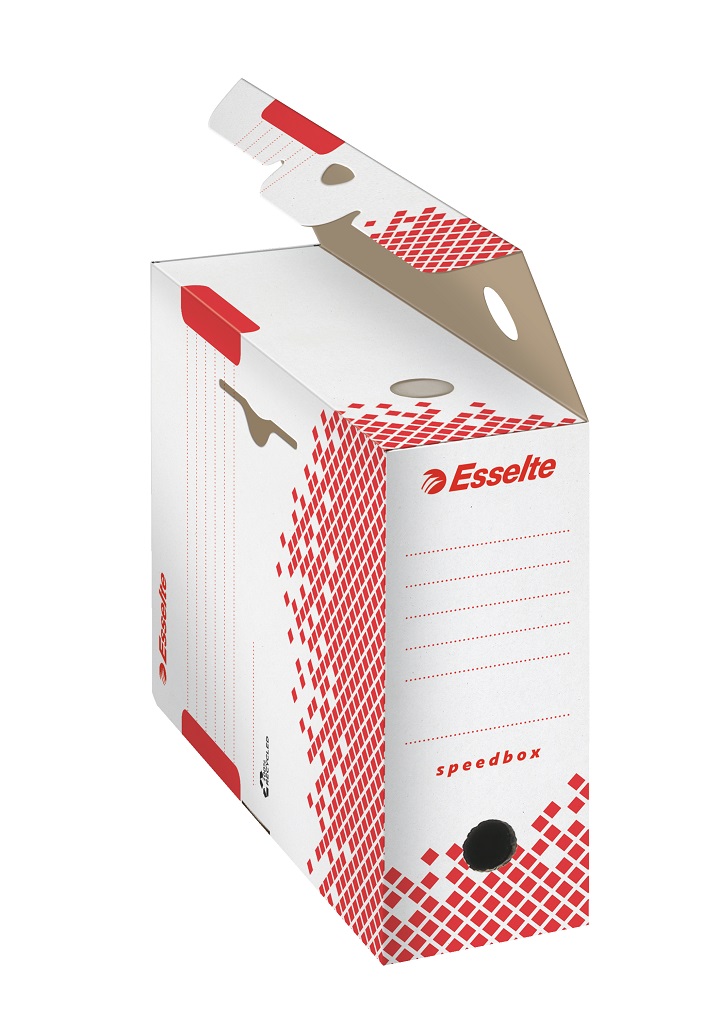 Archívny box z archivačného systému Speedbox. Dvojité bočnice chránia box pred otvorením a spevňujú okolie chrbtového úchytu. Vhodný pre dokumenty formátu A4. Ideálna veľkosť pre archiváciu v policiach, určené pre vertikálnu a horizontálnu archiváciu. Vyrobený zo 100% recyklovanej vlnitej lepenky. Chrbát 100 mm. Väčšie balenie 25 kusov.