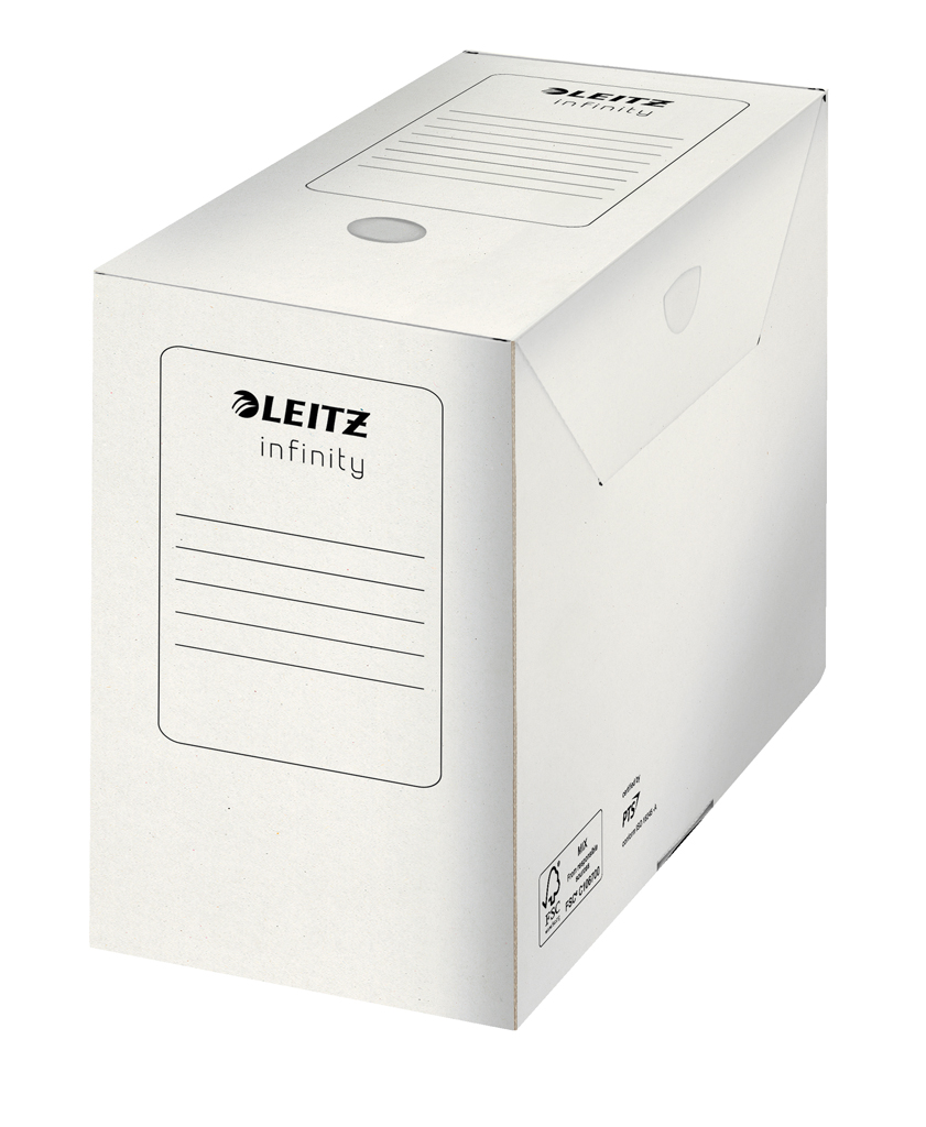 Špeciálny archivačný systém Leitz Infinity splňuje všetky kritériá a požiadavky medzinárodnej normy ISO 16245 pre dlhodobú a náročnú archiváciu dokumentov. Je vyrobený z novo vyvinutej lepenky, ktorá je 100% acid free (alkalická).
