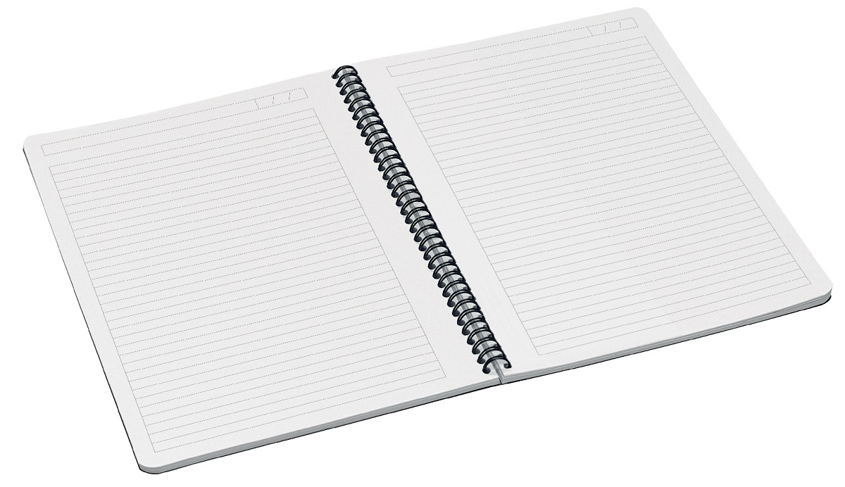 -Drôtená väzba umožňuje otvorenie poznámkového bloku v rozsahu 360 stupňov, prehnutý na polovicu môže poslúžiť ako podložka na písanie poznámok na cestách.