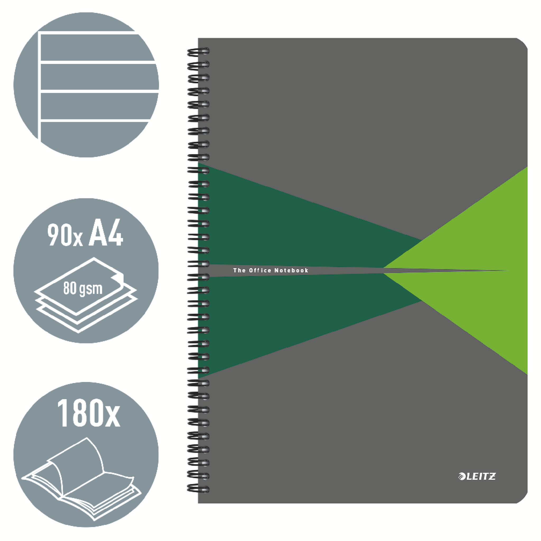 Špičkový zápisník na každodenné používanie. Každý zápisník má 90 listov papiera najvyššej kvality s gramážou 80 g/m2, drôtená väzba umožňuje 360-stupňové otváranie, laminované kartónové dosky.