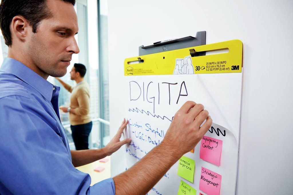 – Post-it® samolepiaci flipchart je čistý biely flipchart určený na použitie pri tímovej práci, prezentáciách a hľadaní riešení.