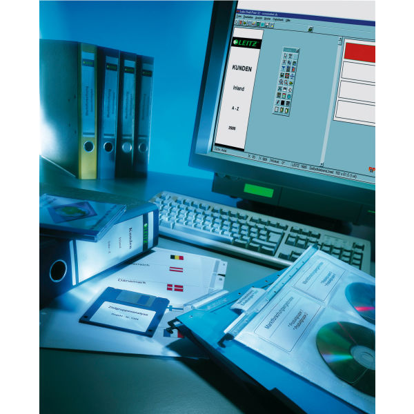 Náhradné zasúvacie papierové chrbtové štítky pre šírku chrbta 5,2 cm vhodné na potlač do laserových a atramentových tlačiarní a kopíriek cez jednoduchý internetový nástroj `EASYPRINT` na stránke www.esselte.com/easyprint. V balení 25 hárkov (á 7 štítkov na liste = 175 ks štítkov) s predperforovanými štítkami.