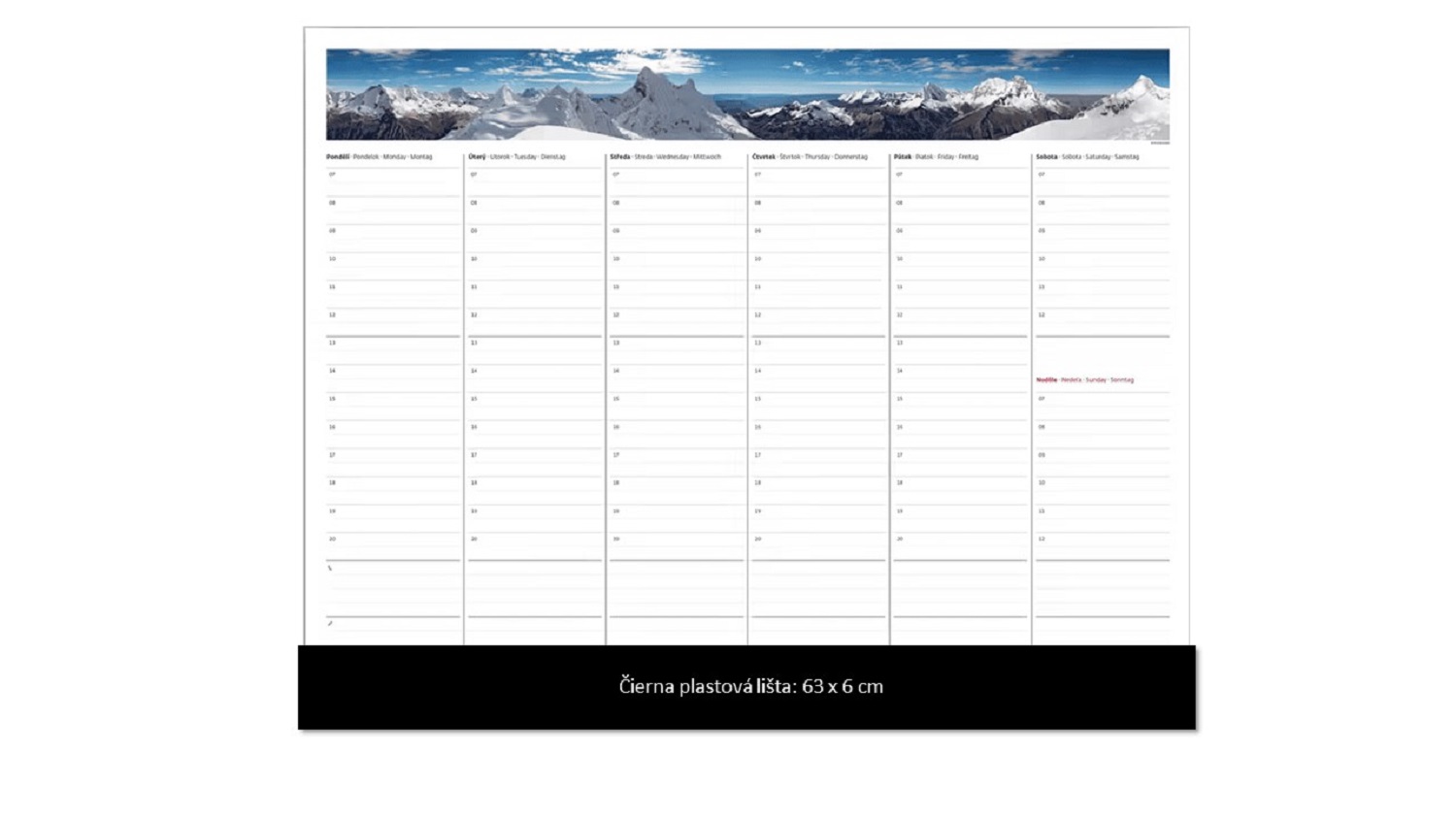 Čierna plastová lišta s kapsou k týždennej plánovacej mape A2