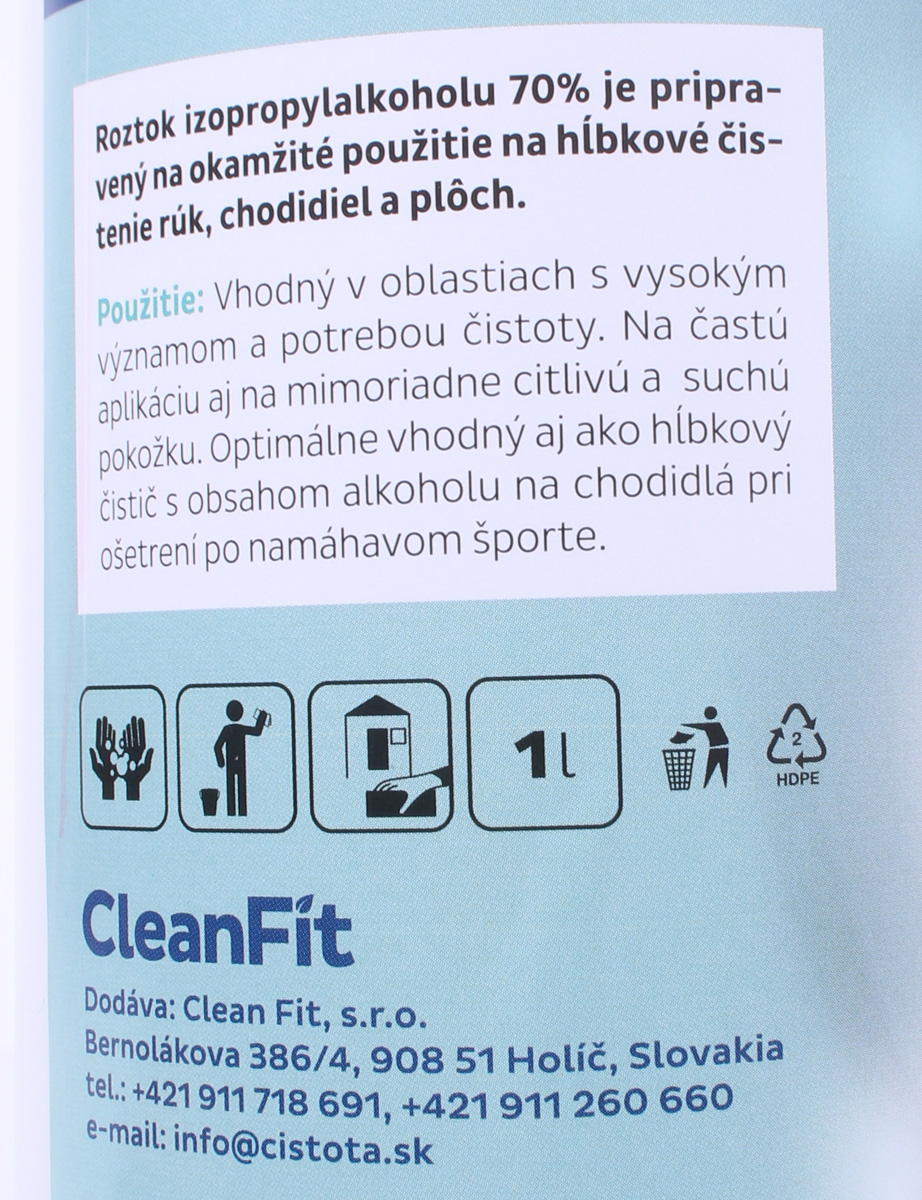 CleanFit alkoholový roztok IZOPROPYLALKOHOL 70% s rozprašovačom 1 l