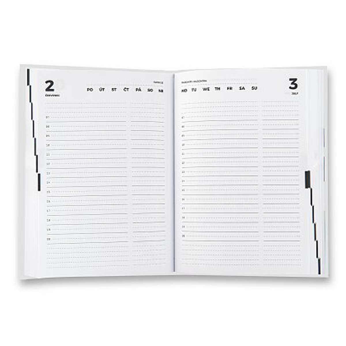 Univerzálny diár na ľubovoľný rok s pevnými laminovanými doskami a šitou väzbou.
