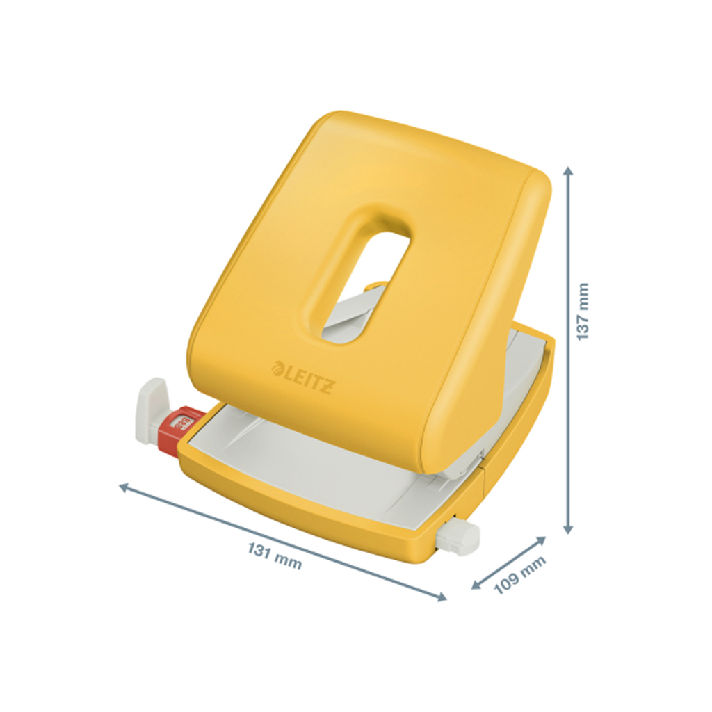 Značková kolekcia Leitz Cosy vám umožní cítiť sa ako doma, nech už vás váš pracovný deň zavedie kamkoľvek. Vďaka minimalistickému dizajnu a lákavej matnej povrchovej úprave pridáte svojmu pracovnému priestoru štýl a farbu. Dierovačka na papier Leitz Cosy je pevná a spoľahlivá, na každodenné použitie, bez námahy môže dierovať až 30 hárkov papiera naraz. Táto dierovačka prvotriednej kvality je perfektným doplnkom vášho domova i kancelárie, umožní vám pracovať ľahko a byť produktívny počas celého dňa. Farba teplá žltá.