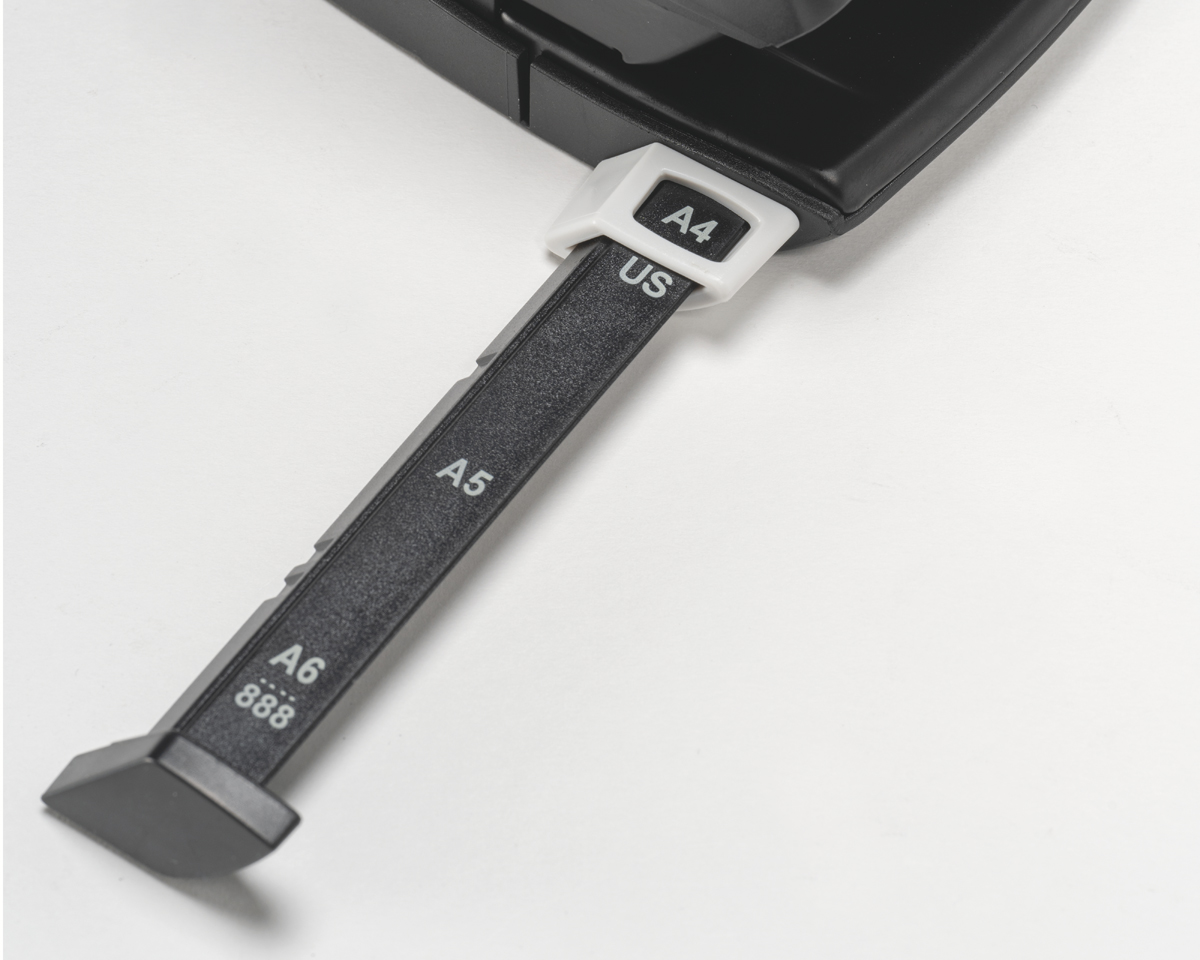Príložník s kontrastnou potlačou označujúcou jednotlivé formáty, rámik na presné určenie formátu, pevná fixácia