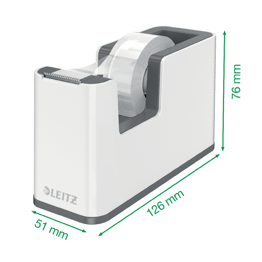 Atraktívny dispenzor s lepiacou páskou v dvojfarebnom prevedení v metalických farbách Leitz WOW s lesklým povrchom. V praktickom dizajne na pohodlné ovládanie jednou rukou. Farba biela/červená.