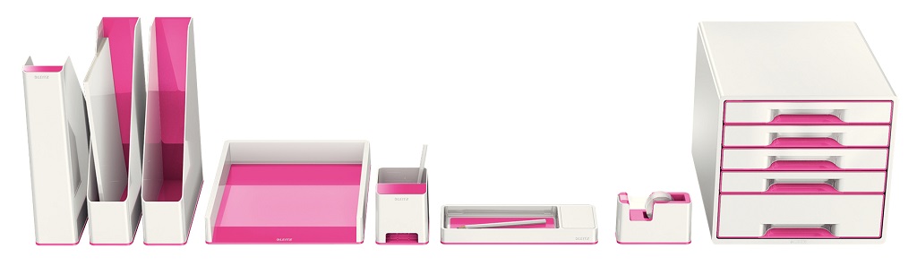 Atraktívny dispenzor s lepiacou páskou v dvojfarebnom prevedení v metalických farbách Leitz WOW s lesklým povrchom. V praktickom dizajne na pohodlné ovládanie jednou rukou. Farba ružová.