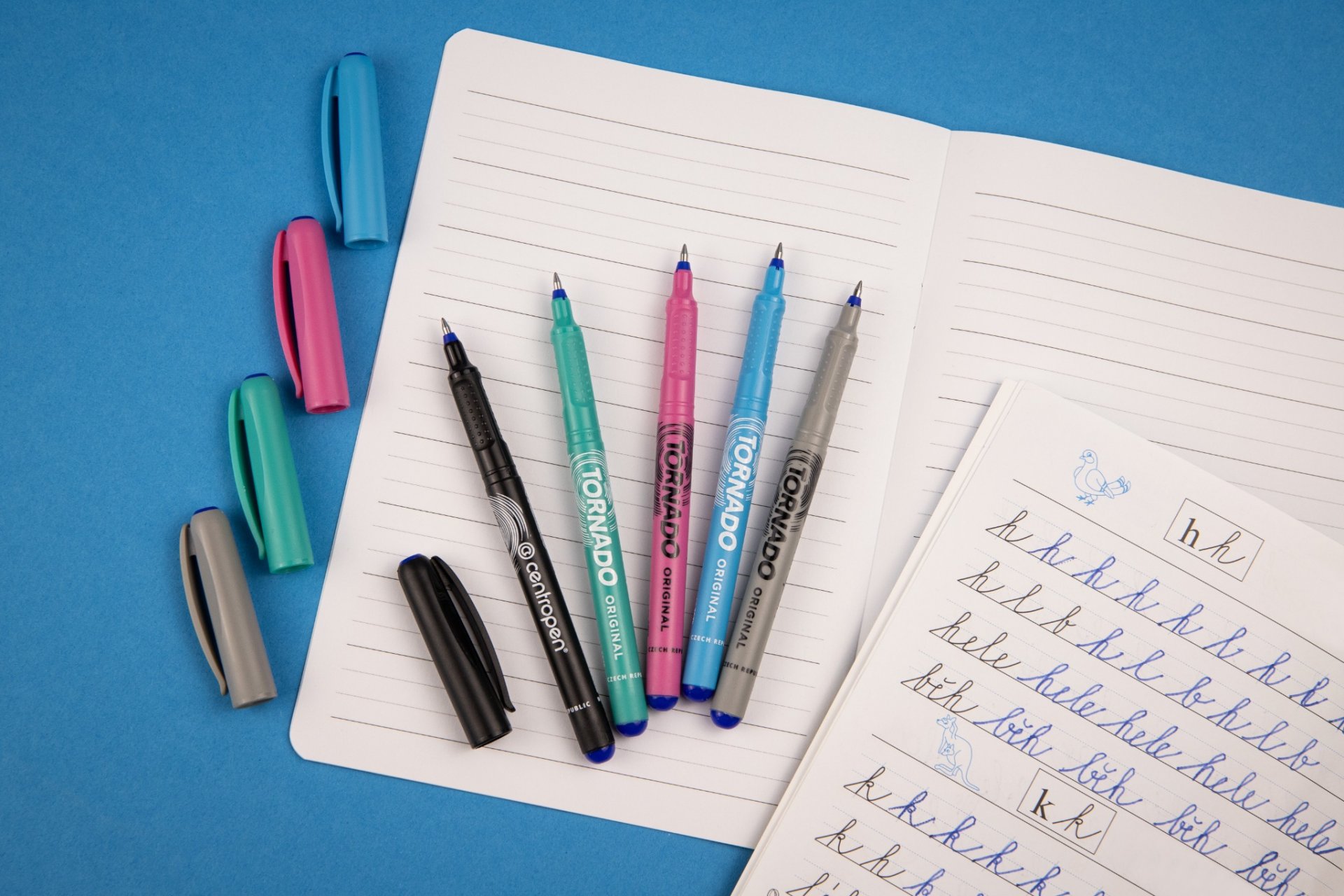 Roller pre školákov s ergonomickým držaním a masážnymi bodmi s modrým zmizíkovateľným atramentom. Pre ľavákov, pravákov i dysgrafikov. Šírka stopy 0,3 mm. Dodávaný v displeji 5 x 4 ks.