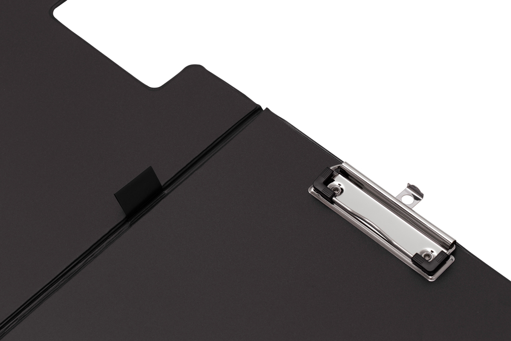 Roztvárateľné dosky vyrobené zo silnej lepenky šírky cca 2mm potiahnutej PVC fóliou. Vhodné na dokumenty formátu A4. Na vnútornej strane ďalšie priehľadné vrecko na dokumenty a držiak na pero alebo ceruzku. Rozmer: 230x350mm.Kapacita 50 listov. Väčšie balenie 12 ks. Farba čierna.