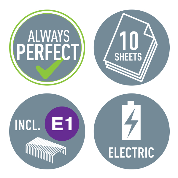 Technológia s napájaním na batérie na zošívanie v pohybe. V žiarivých farbách WOW. Batérie (4× 1,5 V AAA LR03) nie sú súčasťou balenia. Kapacita 10 listov. Náhradné spinky ES556800. Farba modrá.
