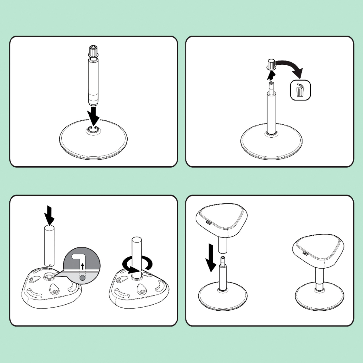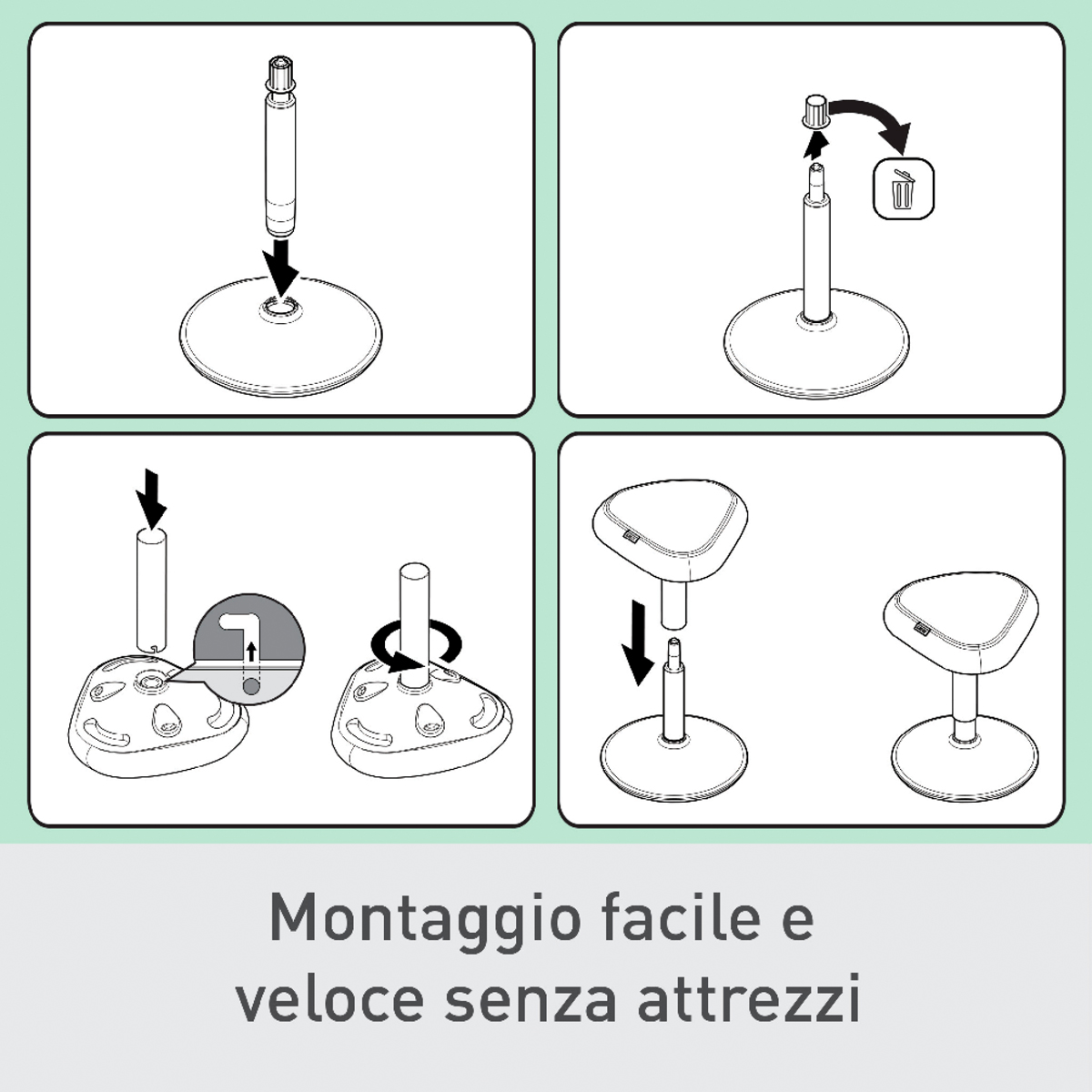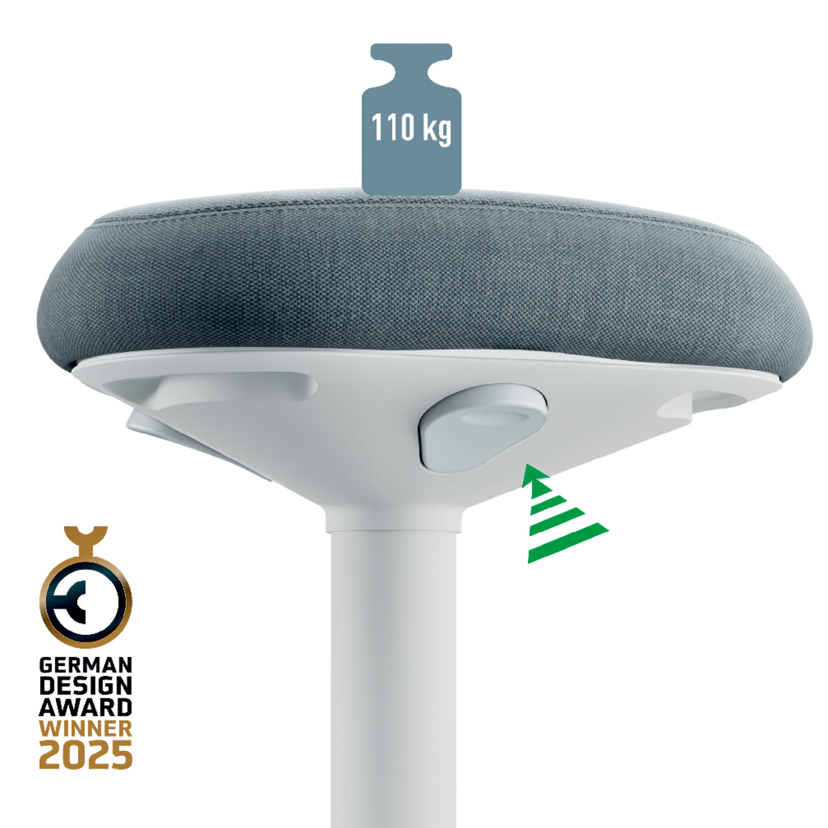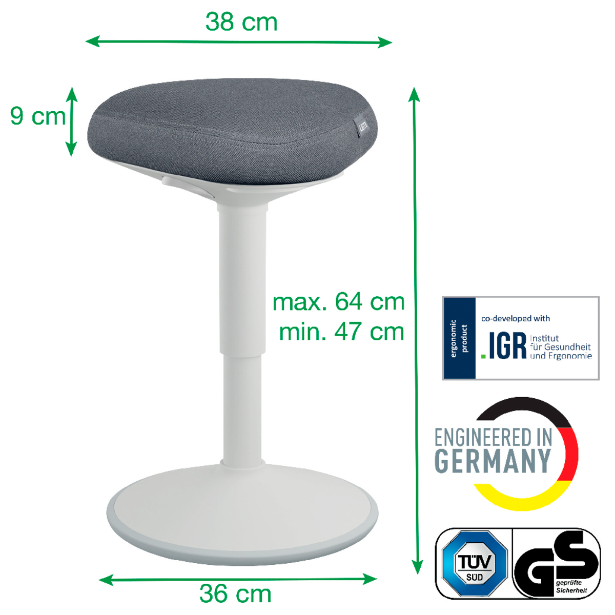 Pre perfektnú oporu pri sedení pri stole vďaka výškovému nastaveniu vhodné pre pevné stoly každú telesnú výšku. Jedinečné, vysoko pohodlné a ergonomické sedadlo s penou s dvojitou hustotou; vyvinuté v spolupráci s IGR. Udržuje vaše svaly aktívne vďaka hojdacej základni. Jednoduché nastavenie výšky vďaka technológii plynových pružín, stlačte jedno z 3 tlačidiel bez ohľadu na polohu sedenia. Protišmyková základňa.