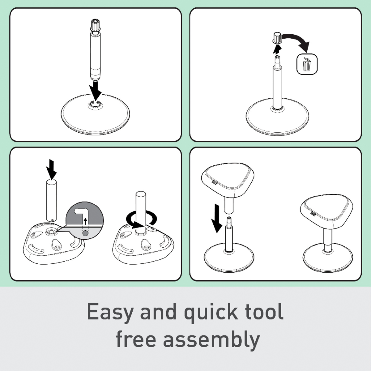 Plynulé, pneumatické nastavenie výšky o 17 cm (47 – 64 cm) stlačením tlačidla pod sedadlom pre nastavenie perfektnej výšky sedadla.