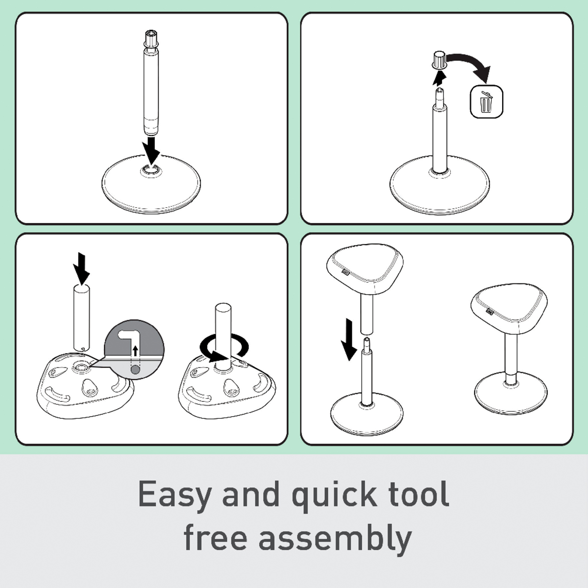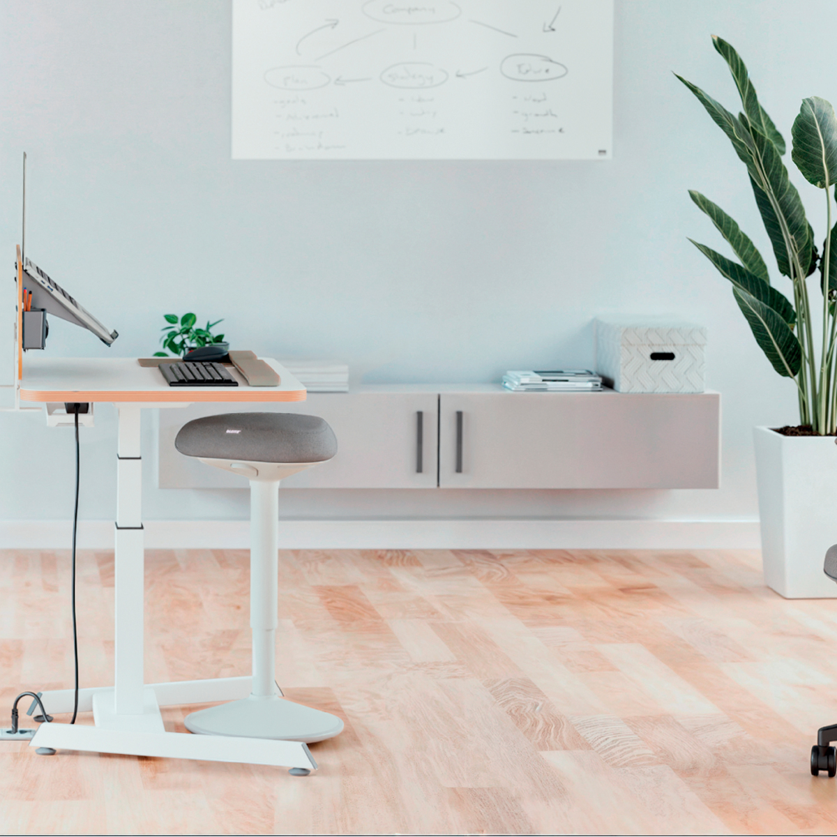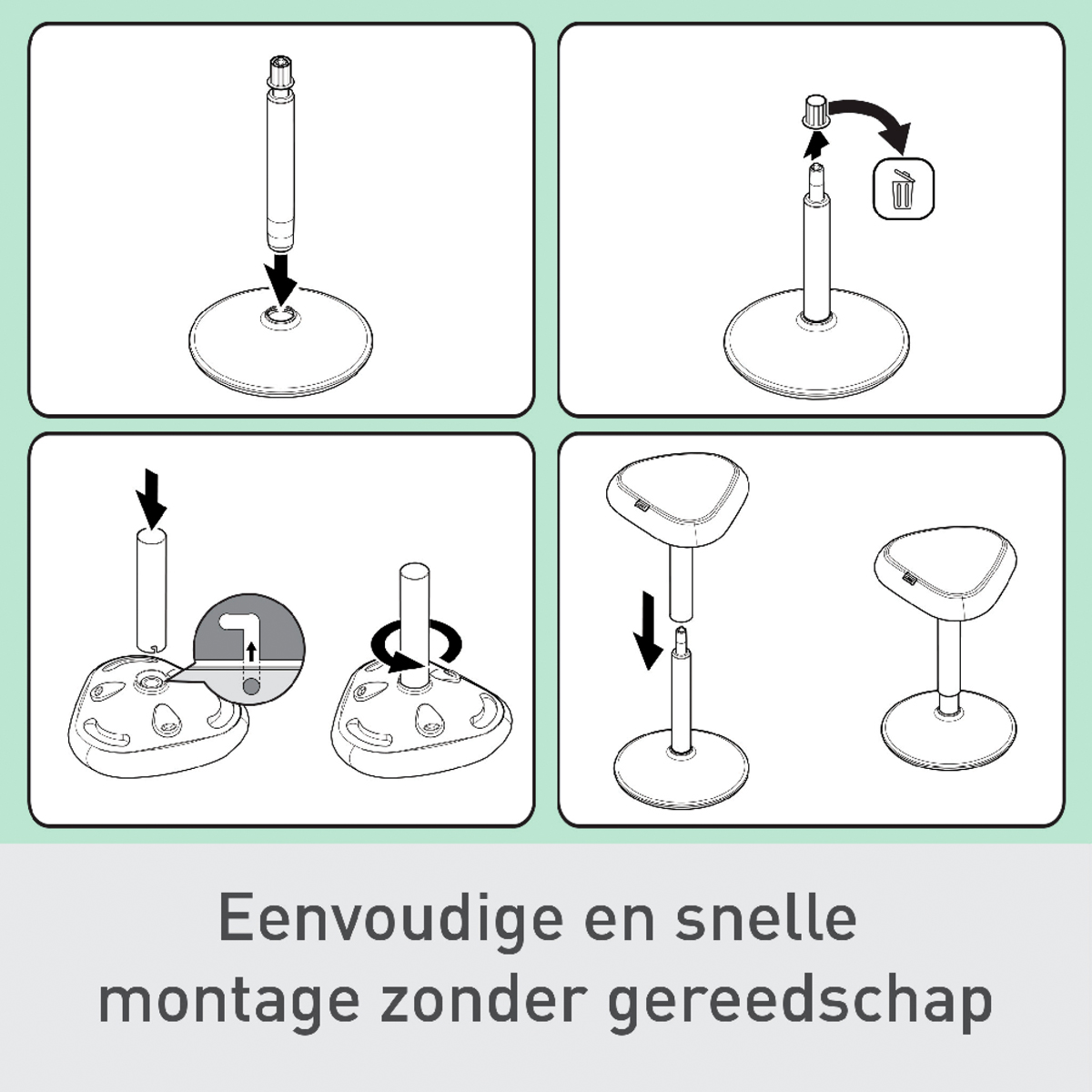 Pre perfektnú oporu v stoji pri stoloch na sedenie/st alebo pri vysokých rokovacích stoloch vďaka perfektnému výškovému nastaveniu pre každú telesnú výšku