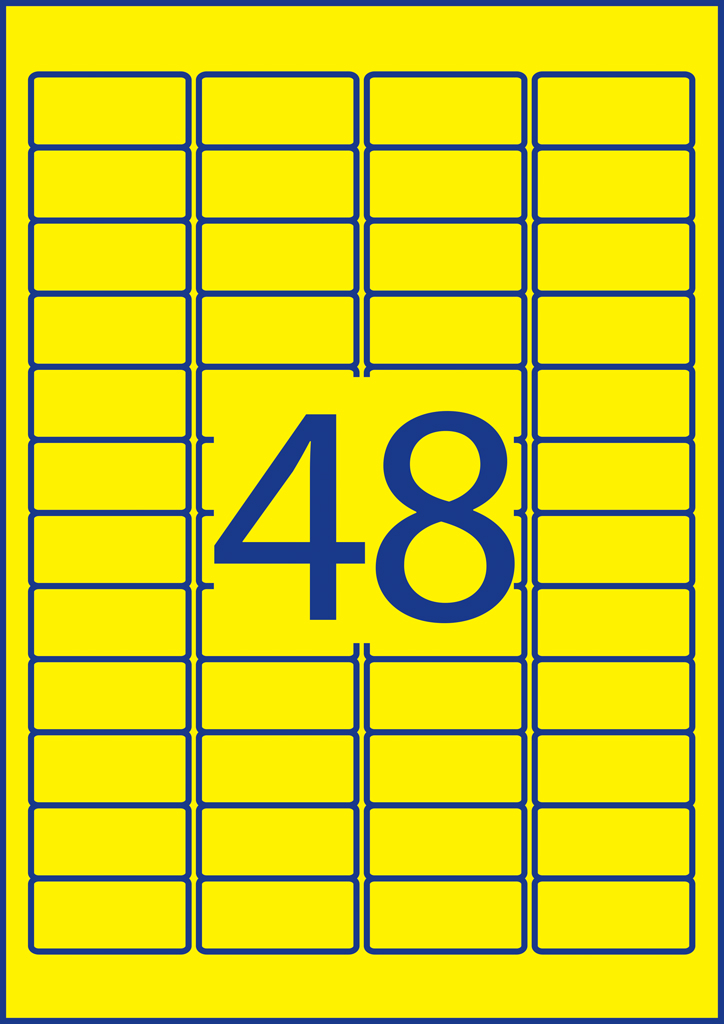 Odnímateľné samolepiace etikety STICK & LIFT odlepiteľné a znovu prelepiteľné (na bežnom povrchu až 5×) bez toho, aby zanechali stopy lepidla. Sú vhodné pre všetky druhy tlačiarní a kopíriek. Využiteľné najmä na každodenné pracovné činnosti, ako napr. vytváranie popisov, cenoviek, označovanie výrobkov, majetku a pod. Farba žltá. Etikety na hárku 48 ks. Balenie 20 hárkov.