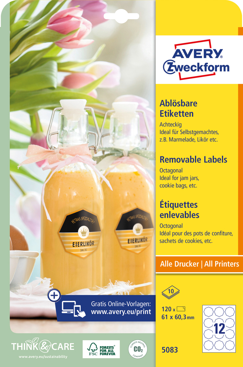 Etikety osemhranné 61×60,3mm Avery 10 hárkov biele