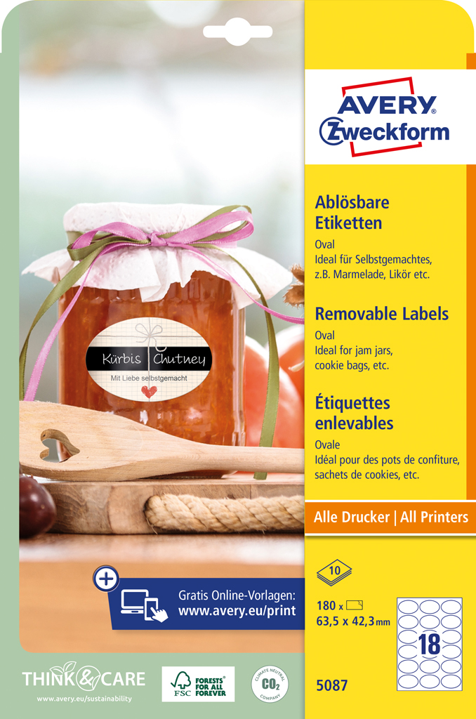 od konkurencie. Spoľahlivá priľnavosť ku sklu, fólii aj papieru. Ľahké odlepenie etikiet bez zanechania stôp po lepidle. Vhodné pre všetky druhy tlačiarní. Šablóny a softvér pre tlač etikiet zadarmo – výber z prázdnych či už navrhnutých, moderných