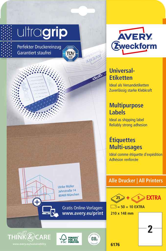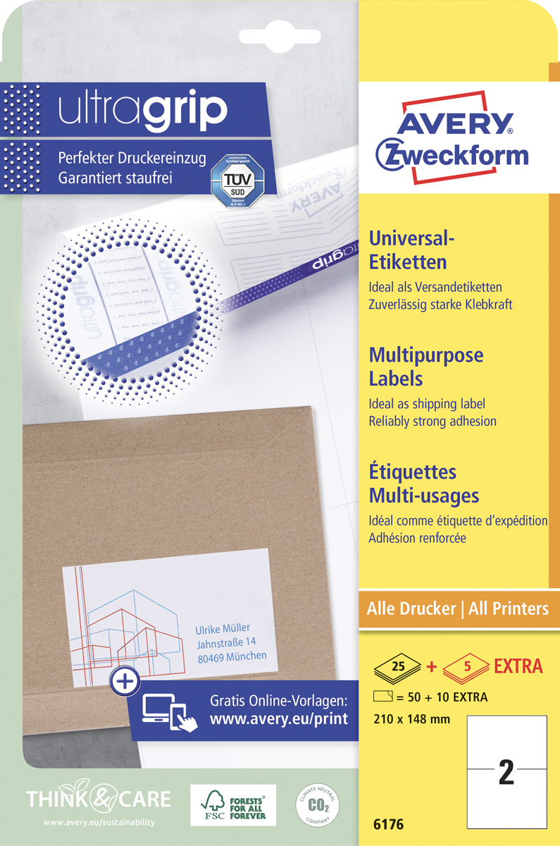 Biele univerzálne etikety vhodné na každodenné použitie v atramentových a laserových tlačiarňach a kopírovacích strojoch. Vďaka inovatívnej technológie ultragrip sa môžete spoľahnúť na bezchybné natiahnutie archu a tlač bez zasekávania. Bezpečnostný okraj QCT zabraňuje zanášaniu tlačiarne lepidlom. Pre laserové tlačiarne testované