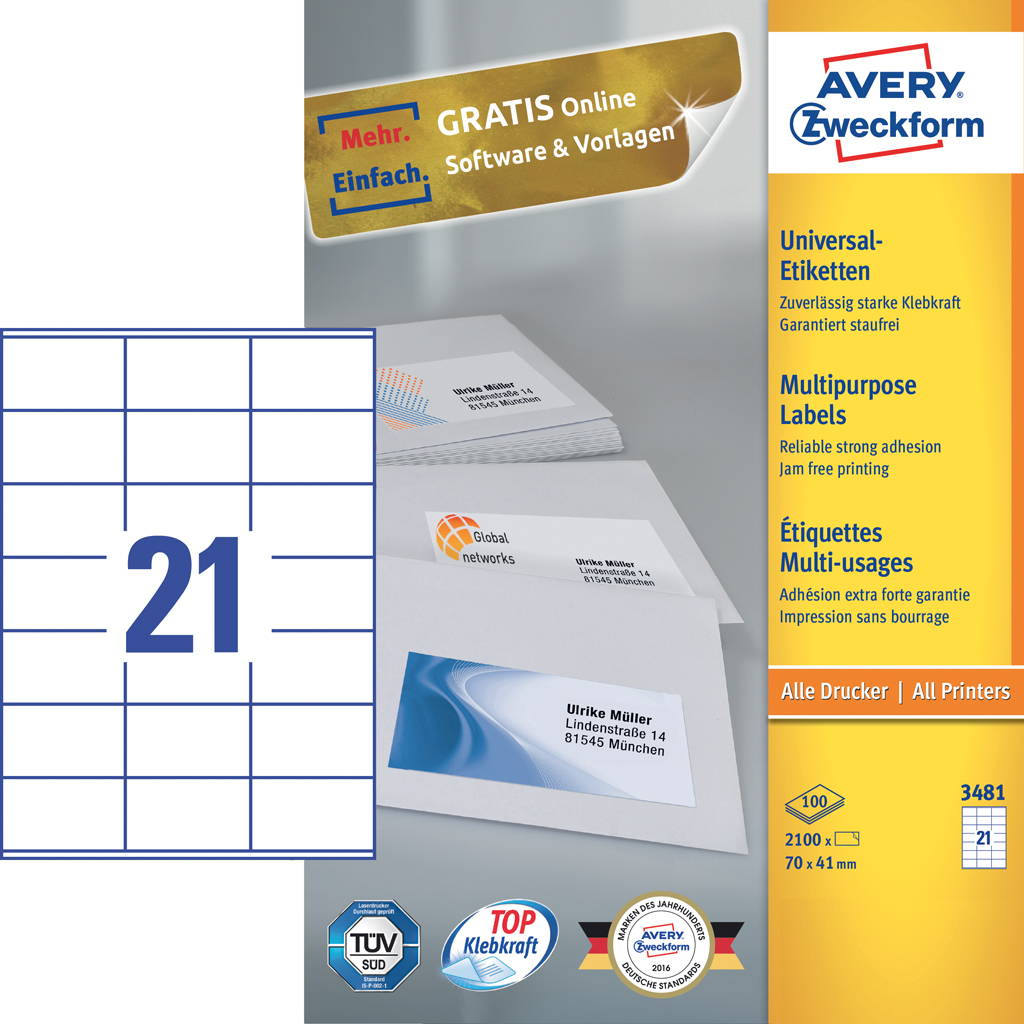 Biele univerzálne etikety vhodné na každodenné použitie v atramentových a laserových tlačiarňach a kopírovacích strojoch. Vďaka inovatívnej technológie ultragrip sa môžete spoľahnúť na bezchybné natiahnutie archu a tlač bez zasekávania. Bezpečnostný okraj QCT zabraňuje zanášaniu tlačiarne lepidlom. Pre laserové tlačiarne testované a certifi kované TÜV SÜD. Vysoká lepivosť na rôznych povrchoch. Ostrá tlač bez bez rozmazávania. Etikety sú vyrobené spôsobom šetrným k životnému prostrediu, majú certifi káciu FSC®, sú bielené bez použitia chlóru. Šablóny a softvér pre jednoduchú a rýchlu tlač etikiet k dispozícii zdarma. U niektorých rozmerov systém QuickPEEL™ na rýchlejšie odlepenie etikiet. Formát A4. Balenie 100 hárkov. Farba biela.