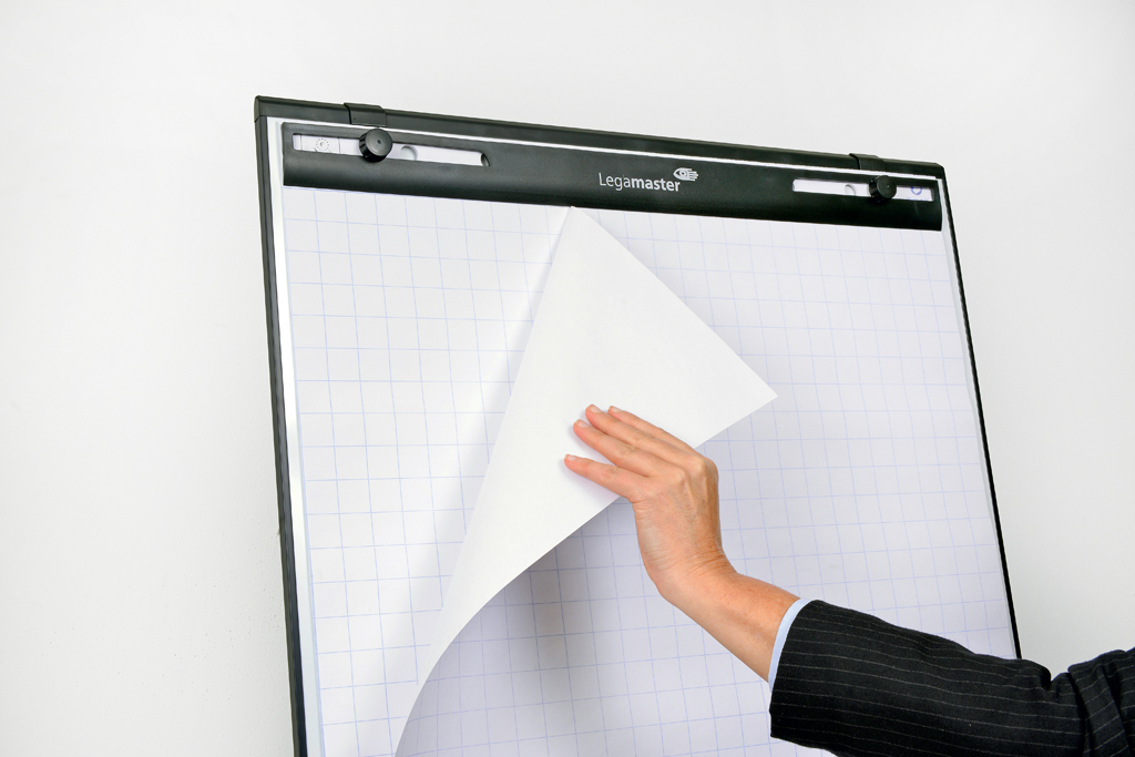 Mobilný flipchart s lakovanou úpravou povrchu. Magnetický povrch umožňuje používanie magnetov a úprava povrchu popisovanie za sucha stierateľnými popisovačmi. Malý otvor pre prst v lište na papierové bloky s uchytením na pohyblivých háčikoch, odkladacia lišta po celej šírke tabule. Pevná základňa v tvare hviezdy s 5-timi kolieskami (2 z nich s aretáciou) pre ľahké posúvanie. Jednoduchá montáž. Popisovateľný povrch. Zastavaná plocha 72×60 cm, rozmery 105×68 cm, výška 190cm, hmotnosť 13 kg.