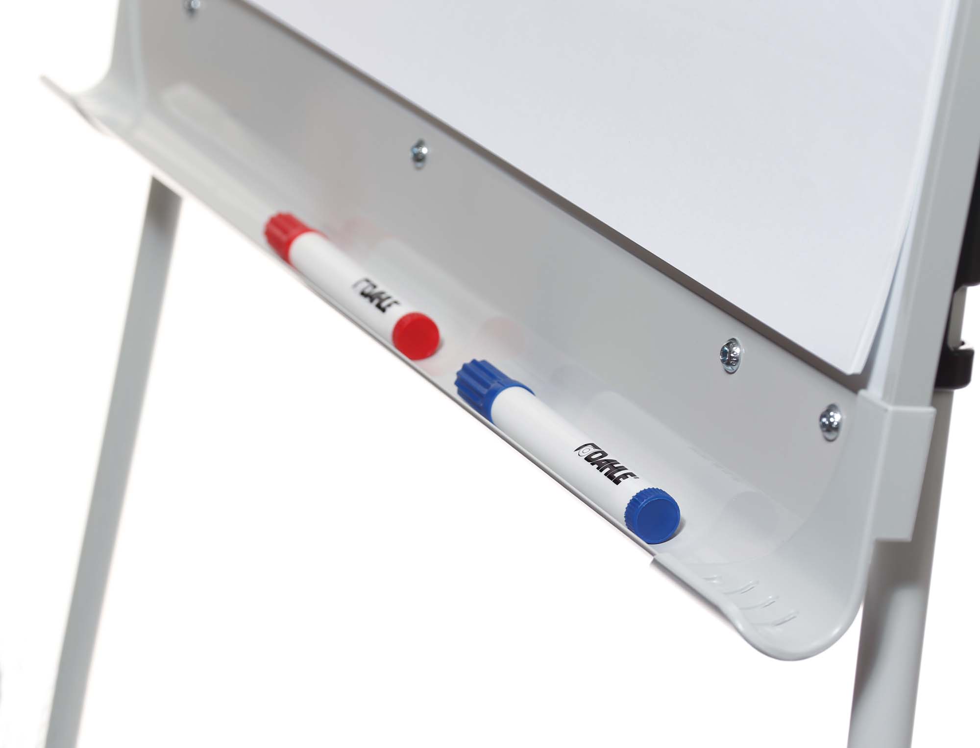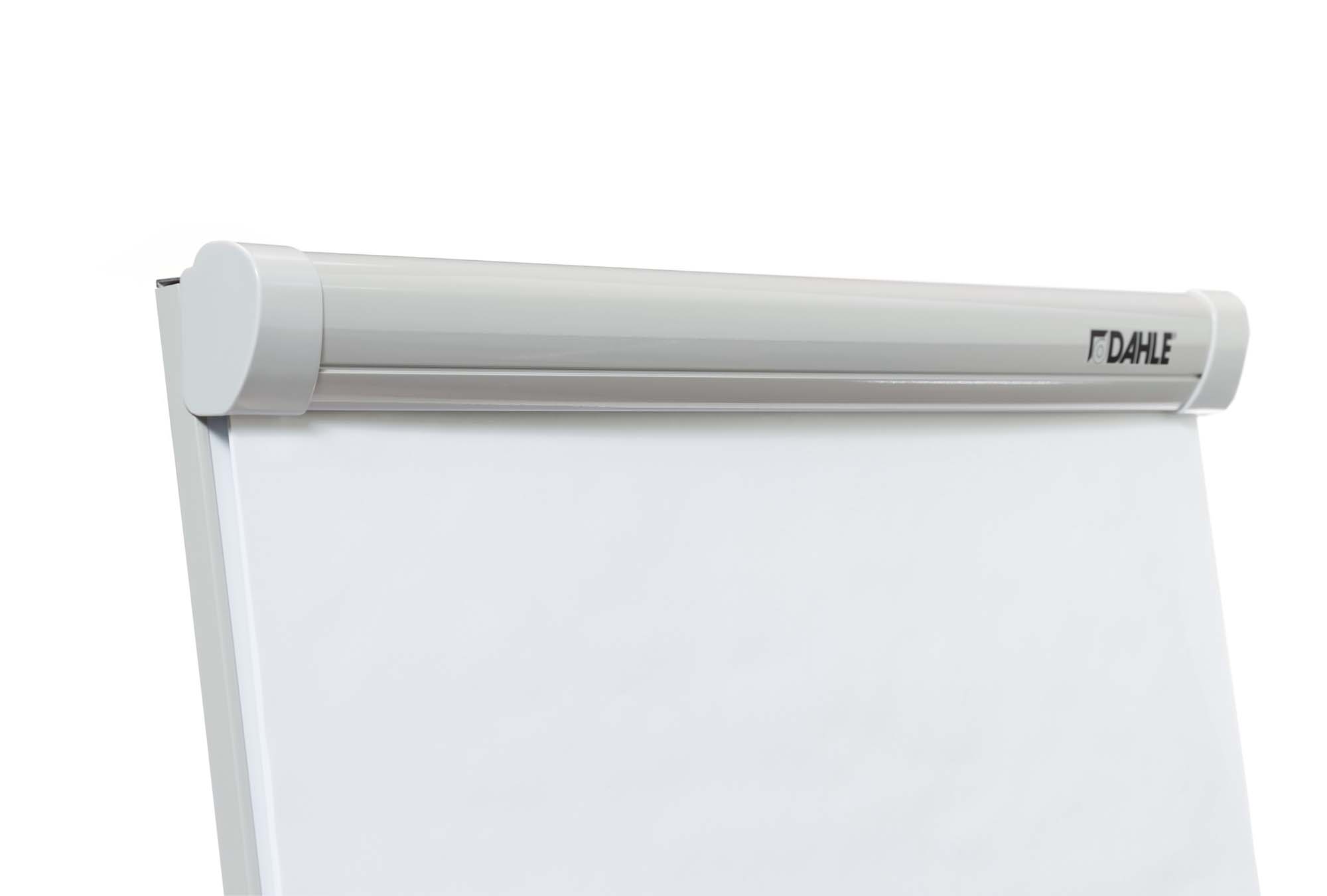 Trojnohý magnetický flipchart s nastaviteľnou výškou, vhodný na všetky dostupné papierové bloky. Sklápací držiak papierových blokov, odkladacia lišta na popisovače po celej šírke tabule. Farba svetlosivá.