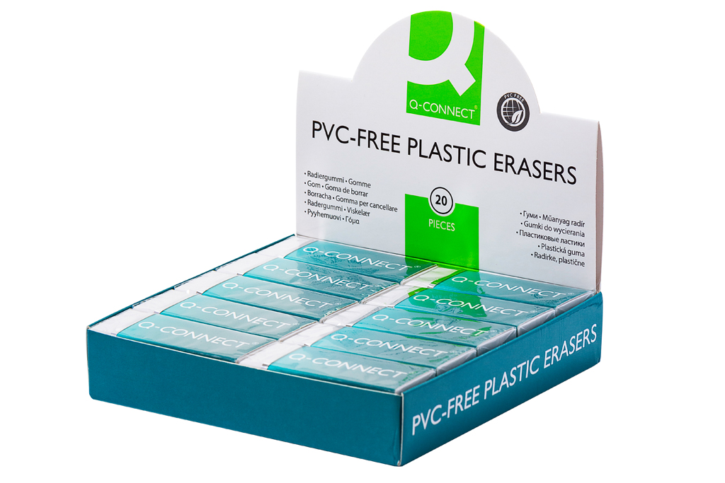 Plastová guma na tuhu a pastelky. Väčšie balenie 20 ks. Rozmery 60 × 22 × 11 mm.