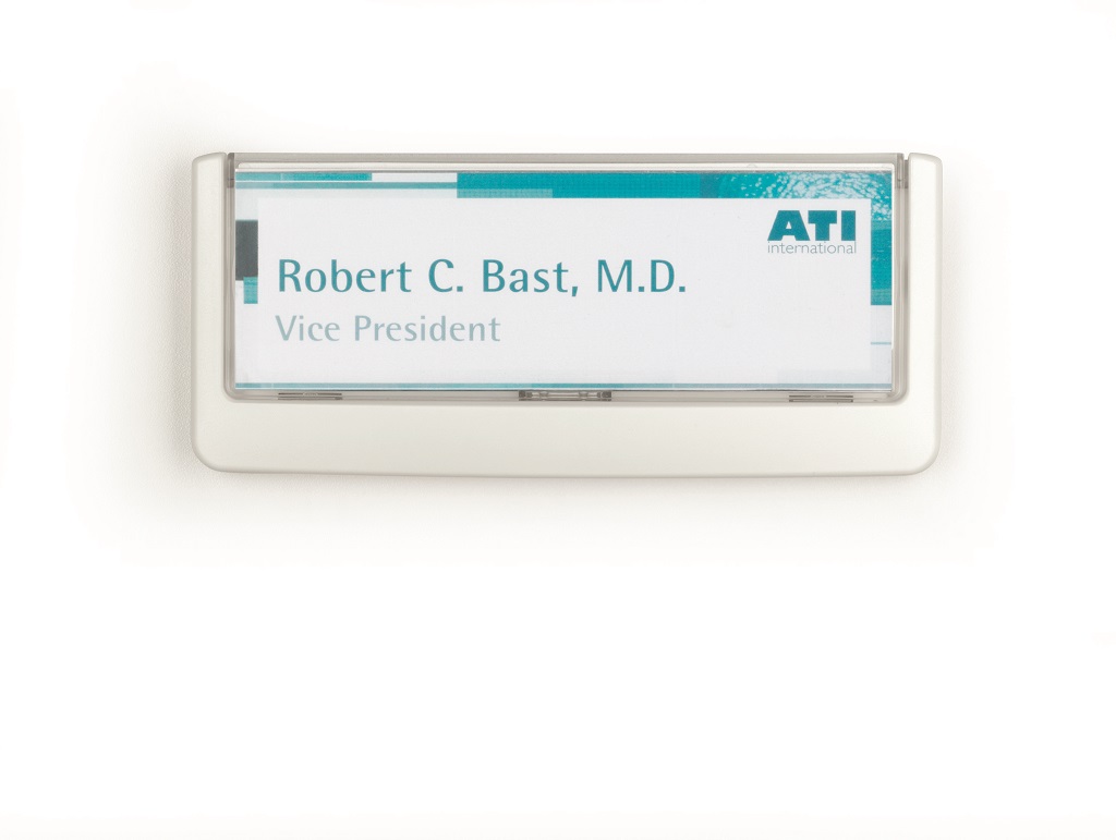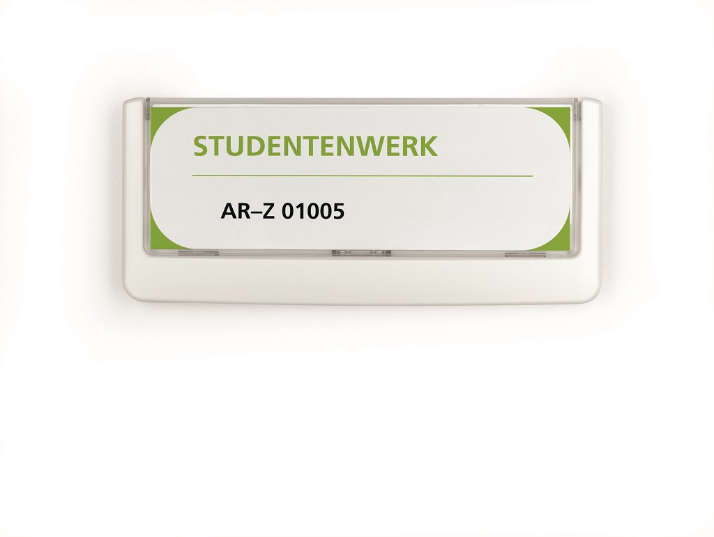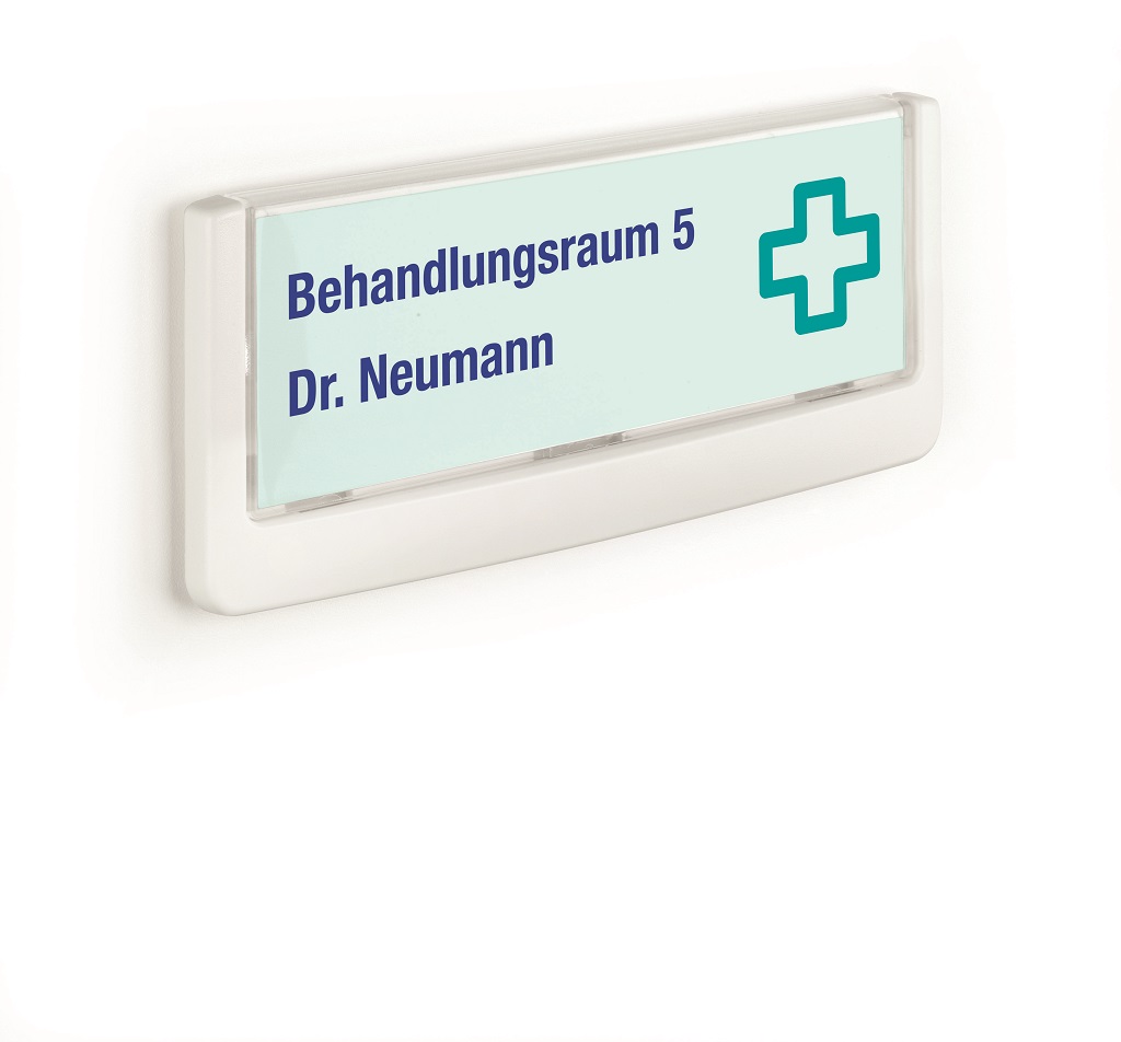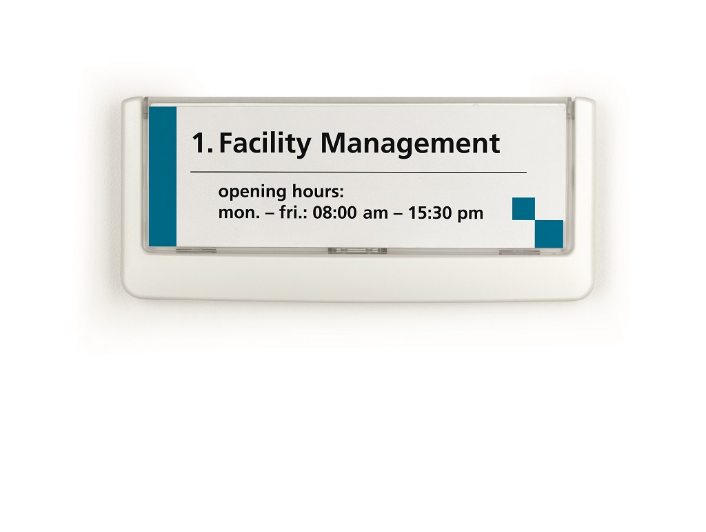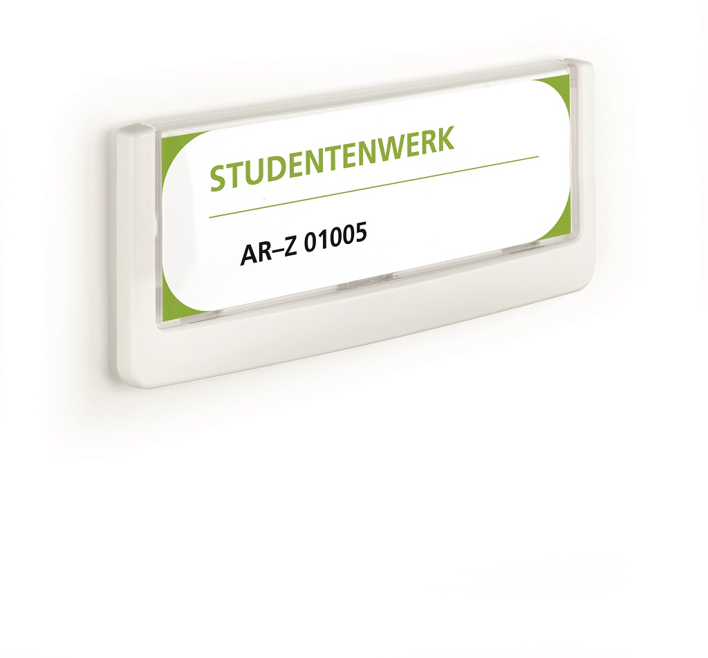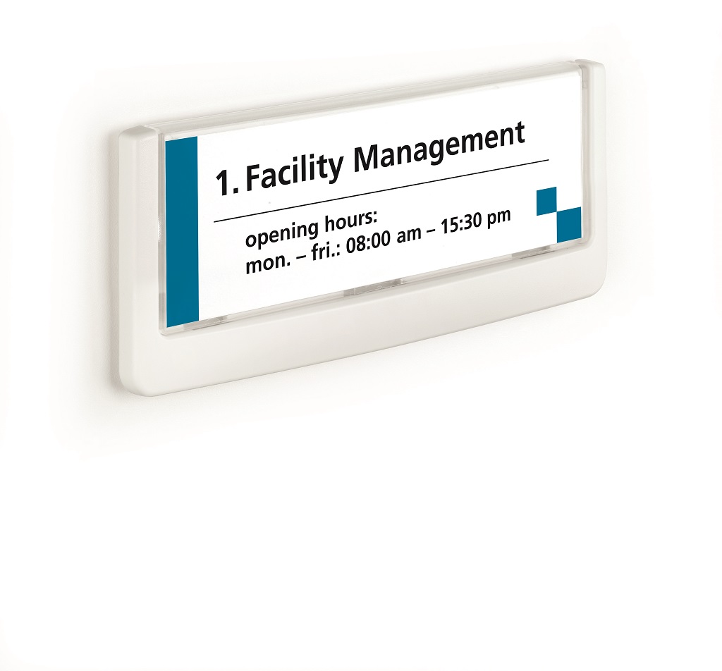 Moderná informačná tabuľka na dvere s lemom v bielej farbe. Predný panel sa otvára na jedno zatlačenie, a tým sa jednoducho sprístupnia vložené popisné papiere, ktoré sa môžu vymieňať podľa potrieb. Ideálna do kancelárií, úradov, škôl, univerzít a hotelov. Súčasťou balenia je montážna sada s názorným návodom. Namiesto pevného montovania môže byť tabuľka k povrchu aj prilepená.