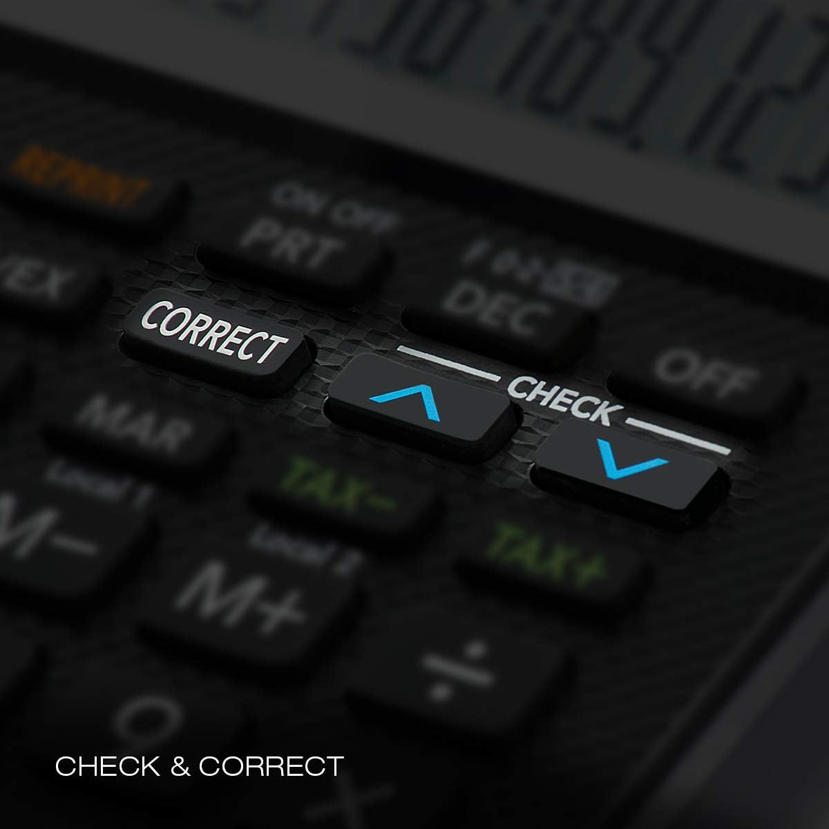 Kalkulačka s tlačou s jednoduchou algebraickou logikou. 12-miestny LCD displej. Napájanie adaptérom alebo batériami, ktoré nie sú súčasťou balenia.