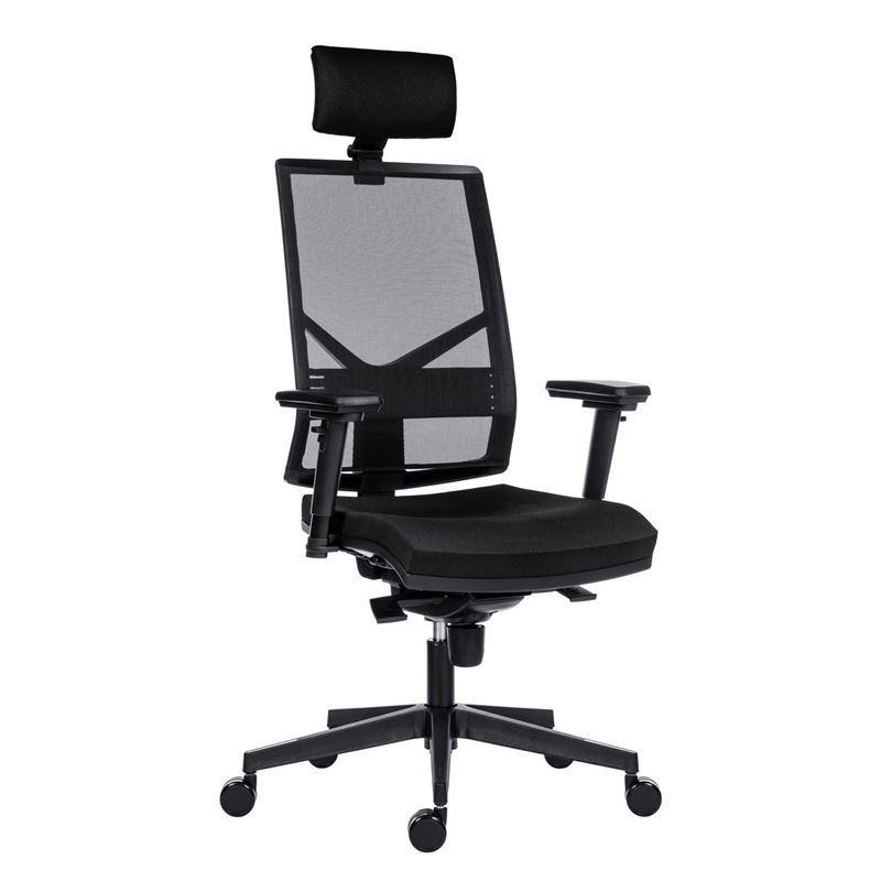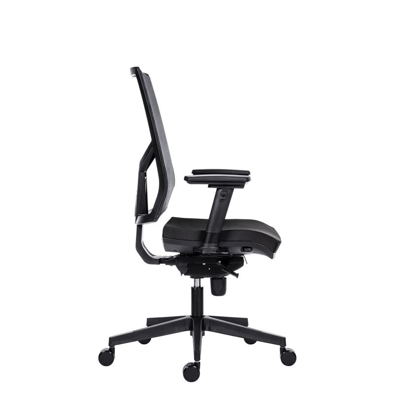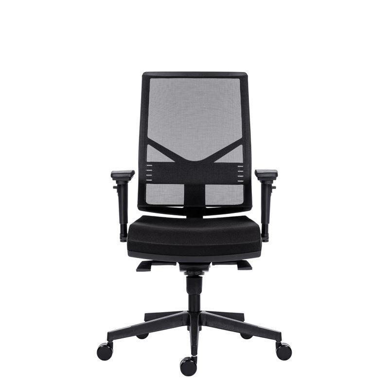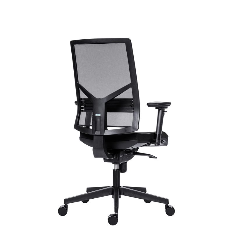 Kancelárska stolička, operadlo so sieťovinou a výškovo nastaviteľnou bedrovou výstuhou.