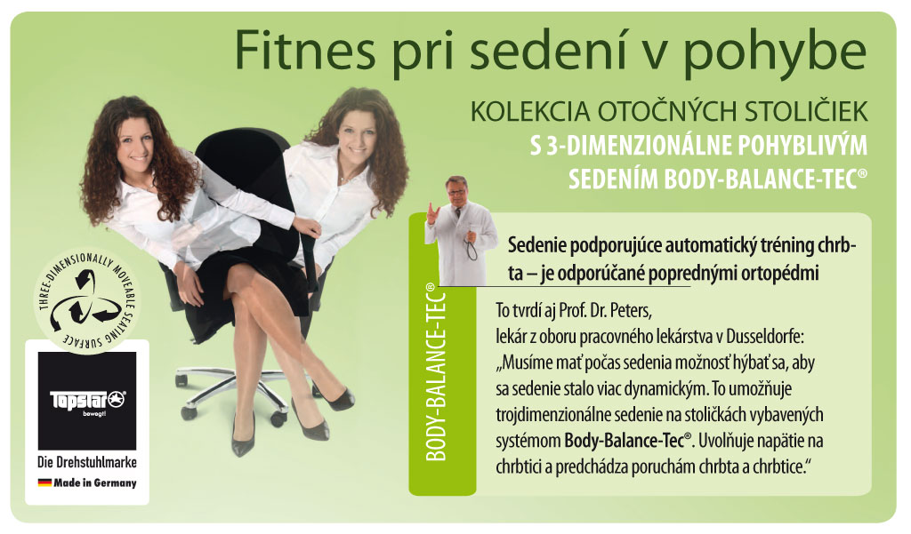 • stolička s pohyblivým orto-sedákom vybavená kĺbom body-balance-tec