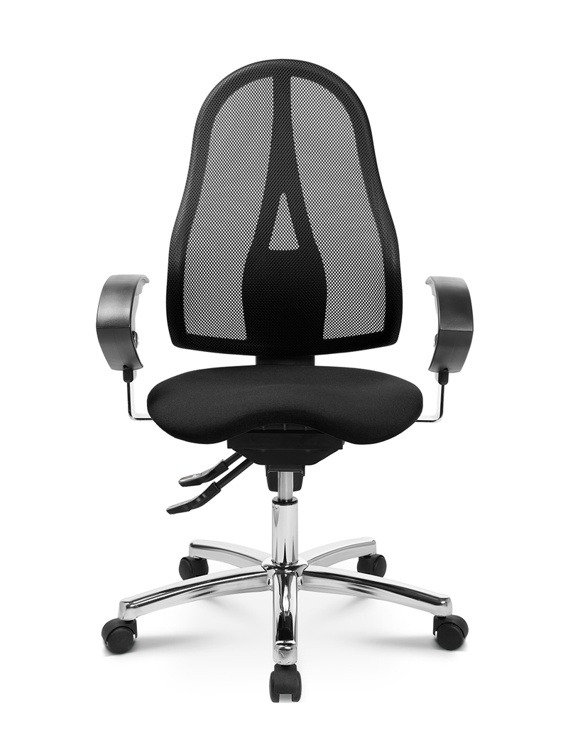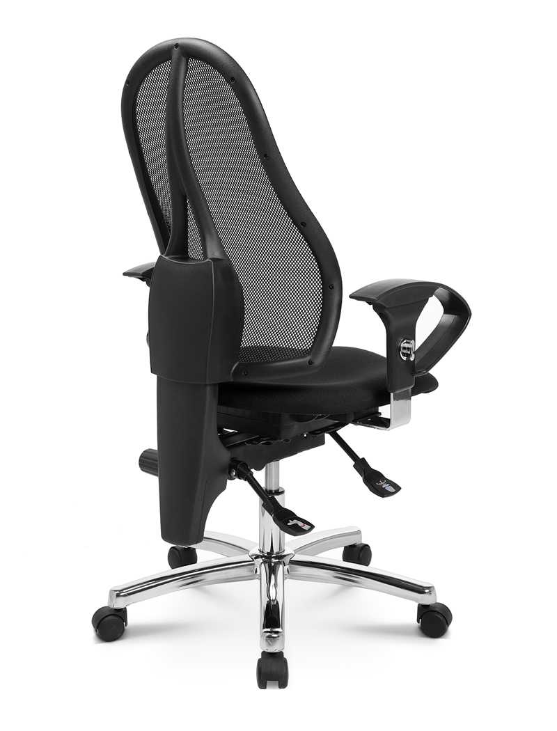 • obrysovo tvarované dizajnové operadlo s priedušným poťahom zo sieťoviny, plynule výškovo nastaviteľné