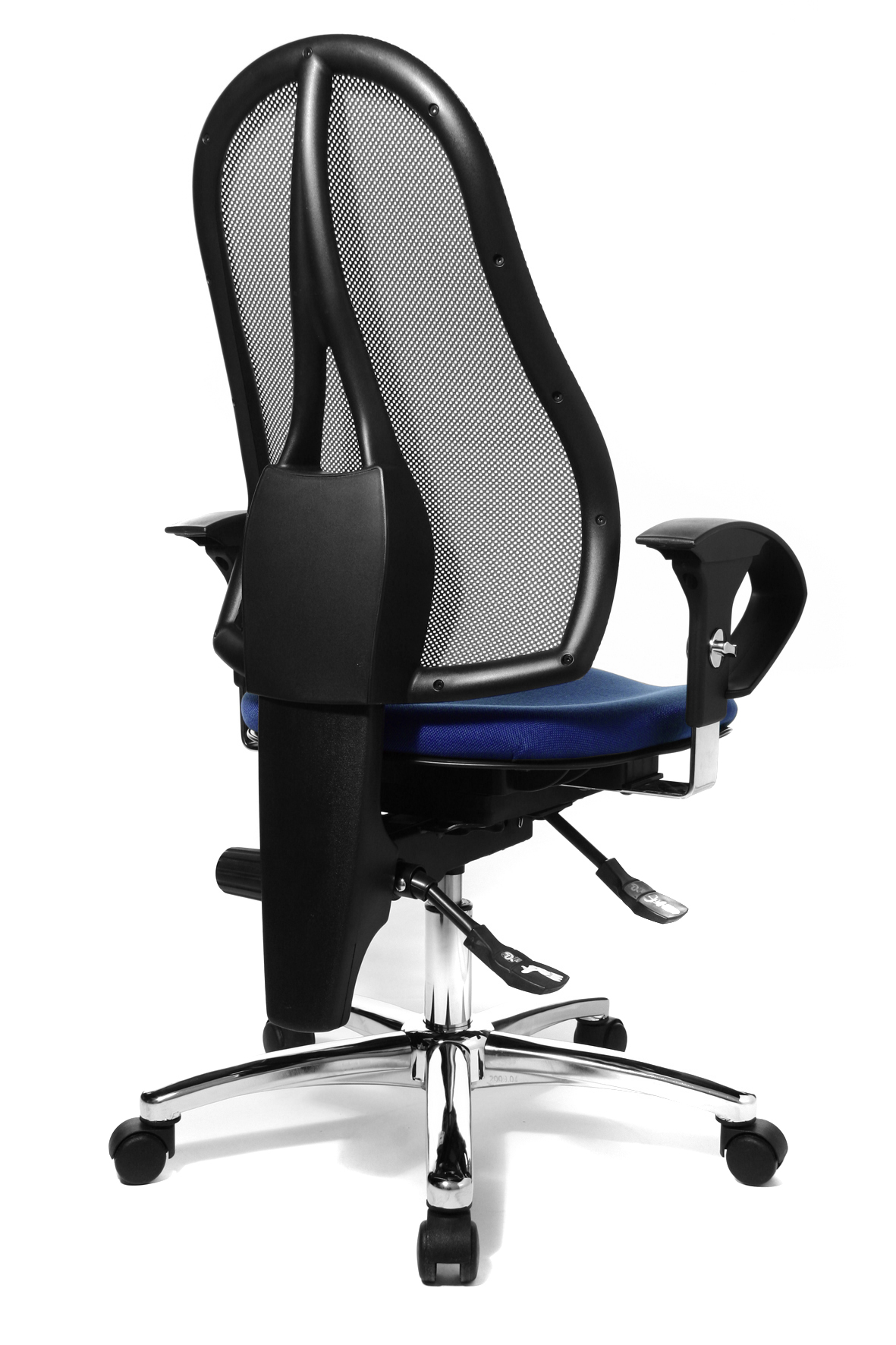• obrysovo tvarované dizajnové operadlo s priedušným poťahom zo sieťoviny, plynule výškovo nastaviteľné