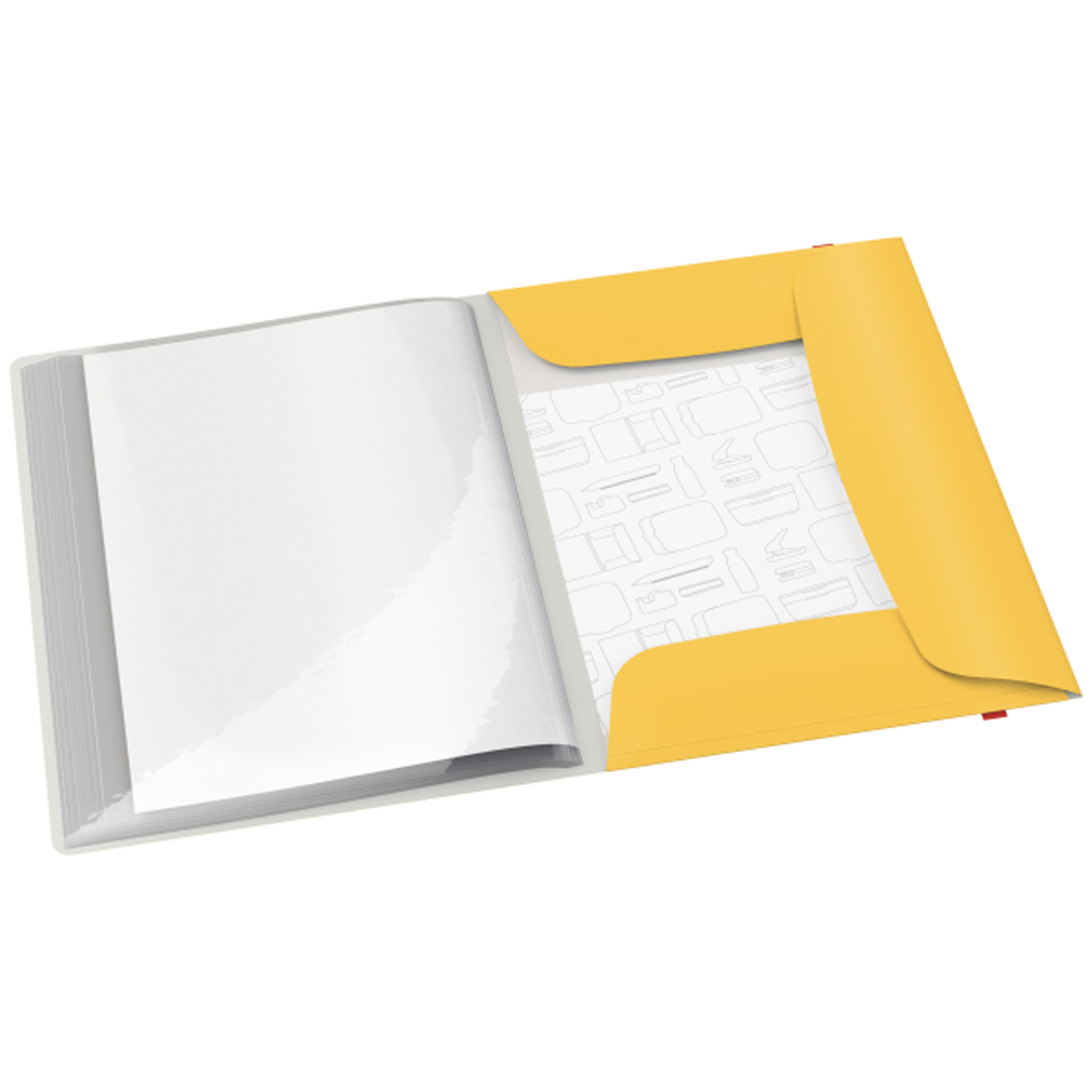 Katalógová kniha Leitz Cosy A4 je ideálna na prezentáciu alebo ukladanie dokumentov, dokumenty chráni a umožňuje ich jednoduché prezeranie. Praktické integrované 3-chlopňové dosky vzadu rozširujú celkovú kapacitu. 20 priehľadných plastových vreciek na prezentáciu 40 hárkov papiera A4 + (80 g/m2). Rozšírená kapacita vďaka integrovaným 3-chlopňovým doskám na zadnej strane knihy. Hrubá elastická gumička na bezpečný prenos dokumentov. Vyrobená z vysoko kvalitného ľahkého recyklovateľného PP pre dosiahnutie pevnosti a odolnosti. Farba žltá.