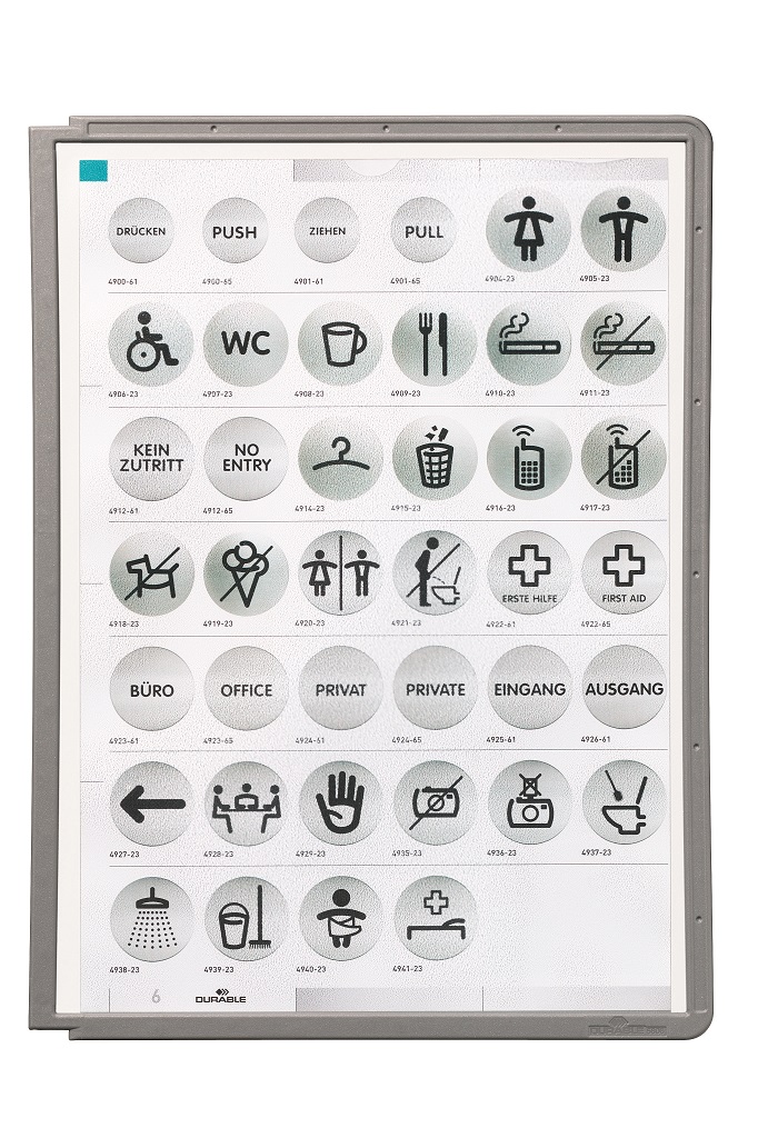 Displejový panel vyrobený z matného antireflexného polypropylénu pre systém Sherpa, kovové držiaky a rotačný stojan. Vložený materiál je kopírovateľný a skenovateľný. Pevný farebný rám s pozíciami pre indexy. Formát A4. Balenie 5 ks.