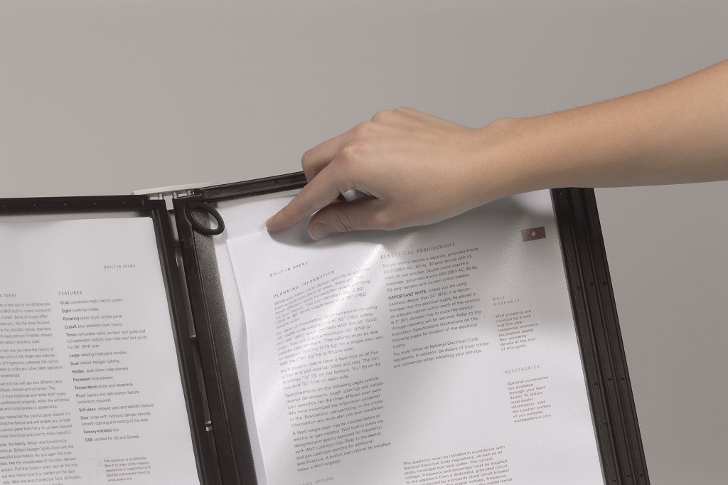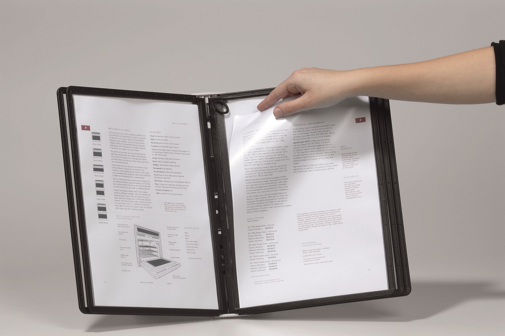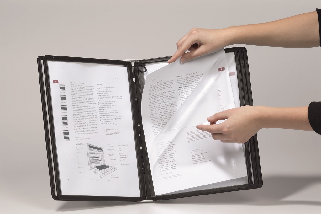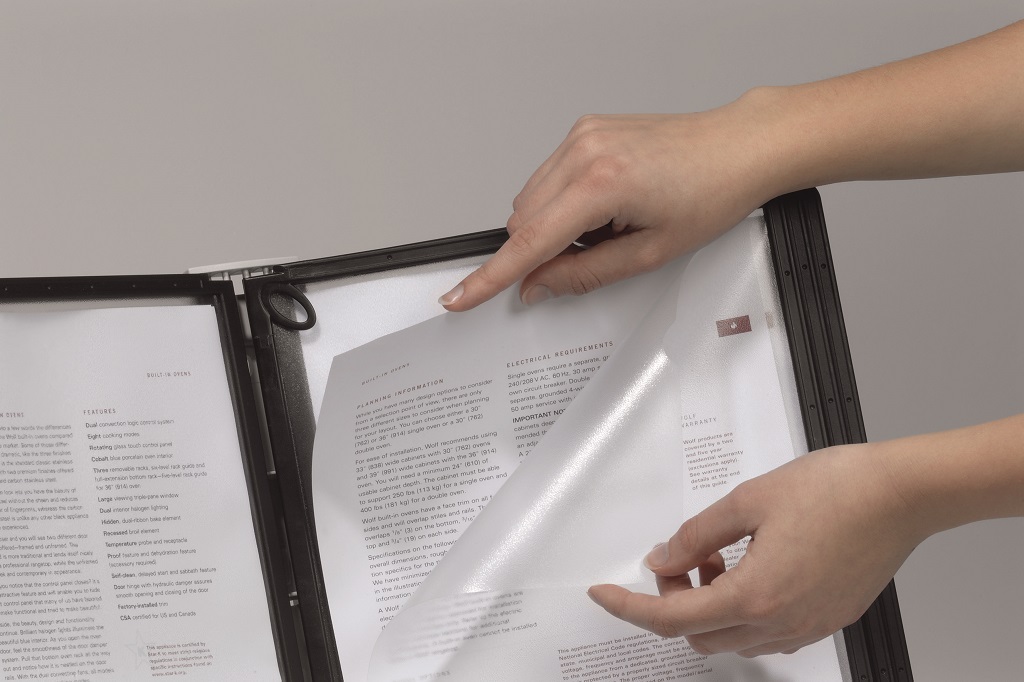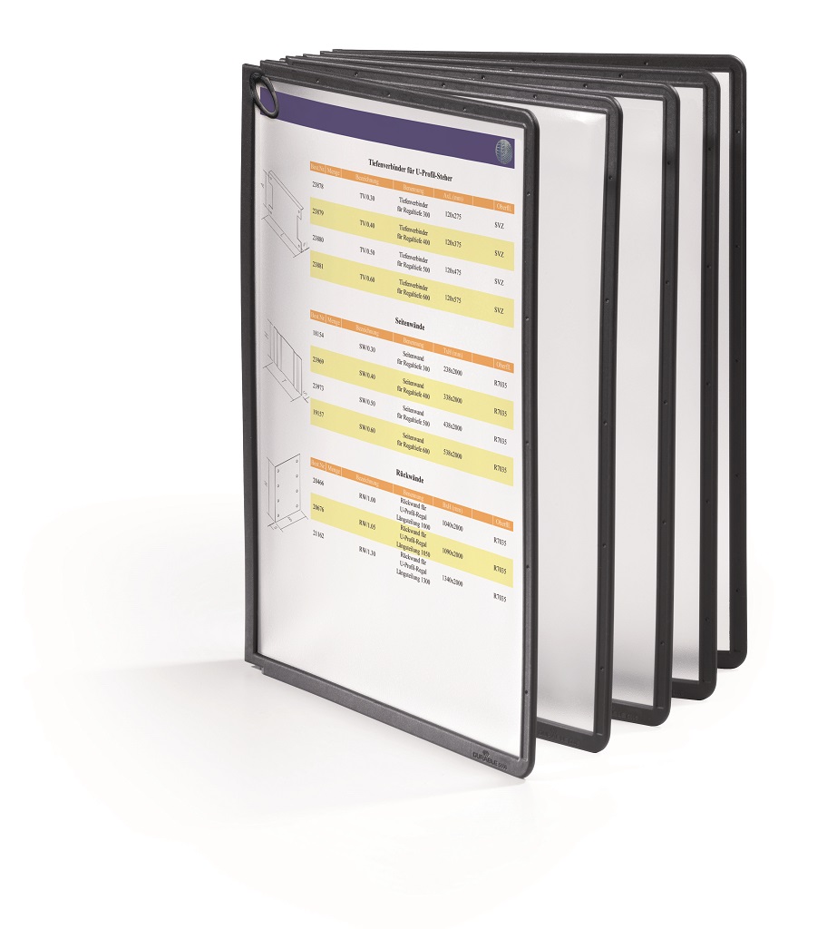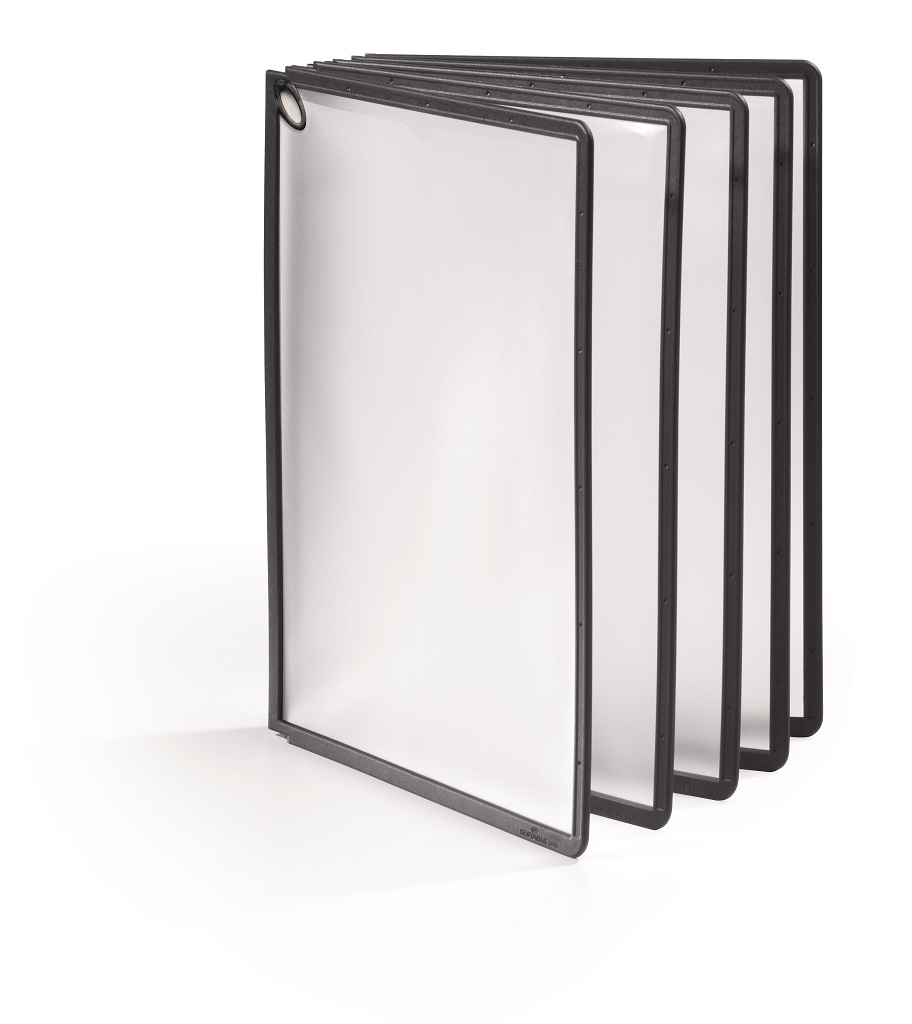 Displejový panel z matného antireflexného polypropylénu vhodný do systému SHERPA®, kovových držiakov a rotačného stojana. Ľahký prístup k výmene alebo vloženiu cenníkov, strán katalógu, ilustrácií a pod. Vložený materiál je kopírovateľný a skenovateľný. Pevný čierny rám s hornými a bočnými pozíciami na indexy. Formát A4. Väčšie balenie 5 ks.