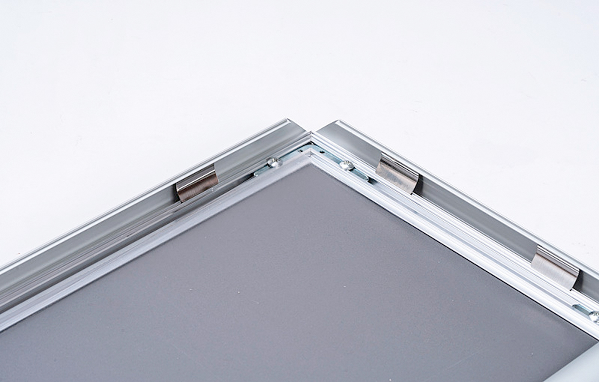 Štvorstranné rámy sa rýchlo a jednoducho otvoria a pripravia na vloženie plagátu alebo obrázka a potom sa zacvaknú – nie sú potrebné žiadne nástroje.