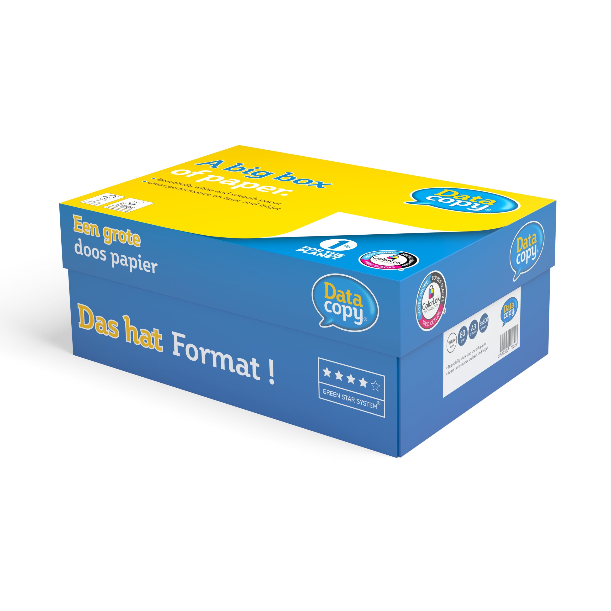 Vysoká kvalita a príjemná belosť predurčujú tento papier na použitie v laserových, kopírovacích a atramentových čiernobielych tlačiarňach. Myslite na seba a uľahčite si život v kancelárii. Rozlúčte sa s bolesťami rúk. Papier formátu A4 je dodávaný v praktickom balení Grab-a-Go™ s mäkkou rukoväťou, ktorá sa nezarezáva do ruky, keď s papierom kľučkujete v kancelárii. Vaše ruky vám budú vďačné. Formát A3. Gramáž 80g.