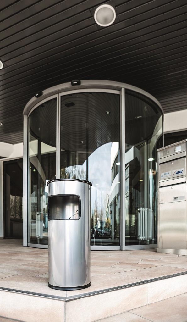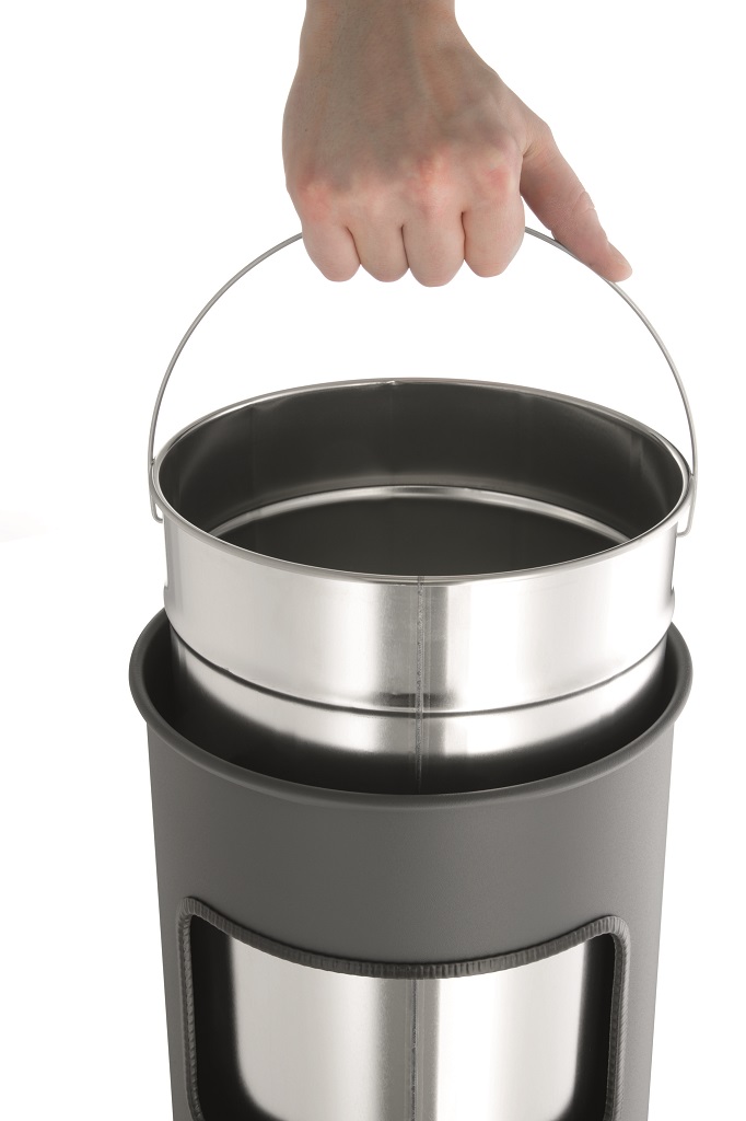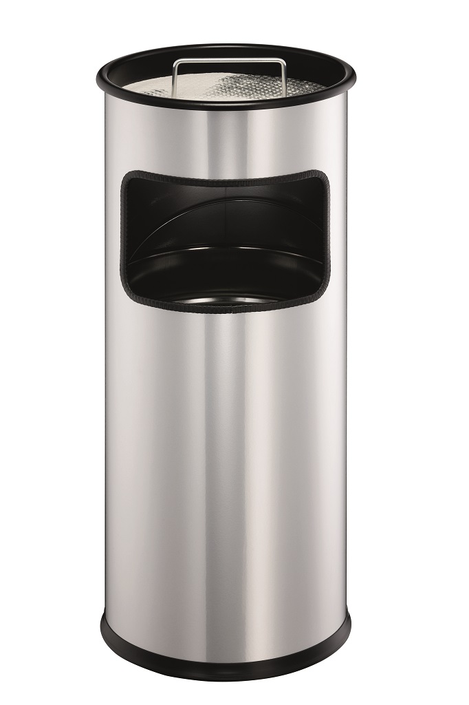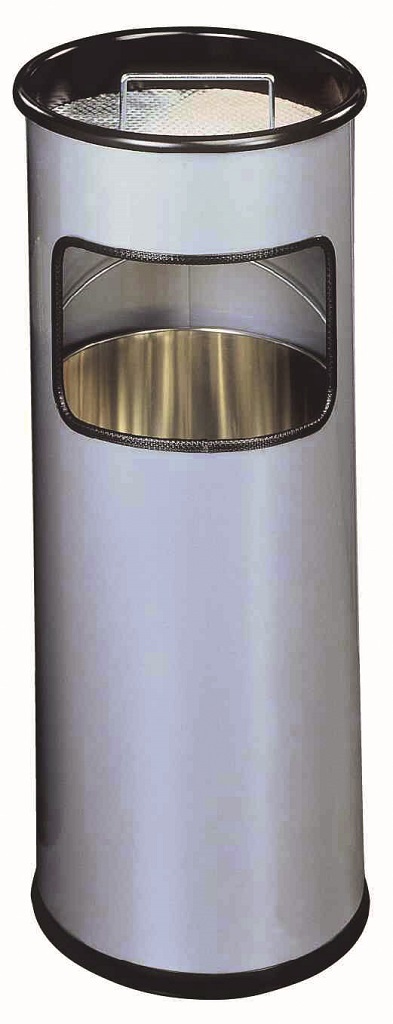 Kovový kôš na odpadky s vyberateľným zinkovým vnútrom a vyberateľným popolníkom naplneným pieskom /1,5 kg/ . Vhodný na použitie v interiéry aj v exteriéry. Objem koša 17 l, výška 620 mm, priemer 260 mm. Objem popolníka 2 l. Farba strieborná.