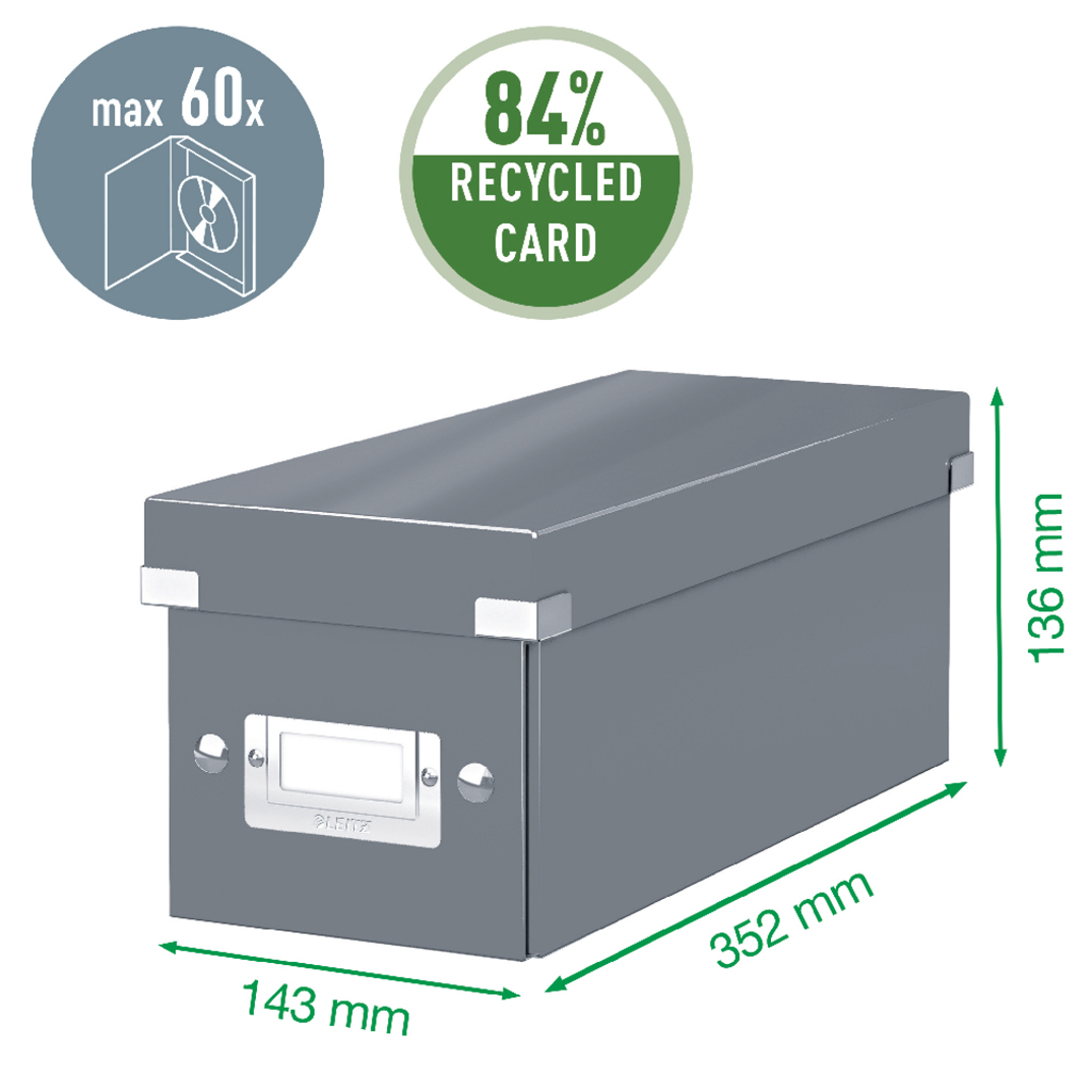 Multifunkčná atraktívna archivačná krabica vo výraznej farbe WOW vhodná na použitie v kancelárii i v domácnosti. CD alebo DVD v klasických plastových obaloch. Pevné a stabilné prevedenie. Materiál silný drevnatý kartón potiahnutý laminom. Úchyty, miesto na štítok, vystužené rohy krabice a spojovacie cvoky vyrobené z kovu. Krabica dodávaná rozložená. Veľmi skladná pri nepoužívaní. Rozmery 143 × 352 × 136 mm. Väčšie balenie 6 ks. Farba červená.