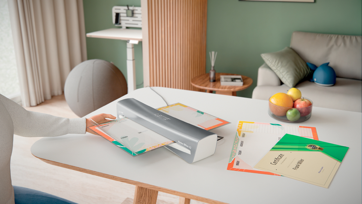 Štýlový a kompaktný laminovací prístroj Leitz iLAM Home Office spája moderný dizajn s funkčnosťou. Tento pre obsluhu prívetivý laminátor vo formáte A3 ponúka rýchle 2-minútové zahriatie a dokument A4 v 80-mikrónovej kapse na laminovanie zalaminuje už za obyčajných 45 sekúnd. Kolískový prepínač umožňuje výber z troch úrovní hrúbky kapsy na všestranné použitie a splnenie všetkých požiadaviek na laminovanie. Hladkú prevádzku zabezpečuje mechanizmus proti zaseknutiu kapsy tak, že bez námahy odstráni akékoľvek zaseknuté alebo zle vložené vrecká na laminovanie. Inovatívna inteligentná stavová LED dióda uľahčuje používanie pomocou intuitívnych svetiel a zvukov: červená dióda znamená zahrievanie, zelená so zvukovým upozornením oznamuje pripravenosť na laminovanie, blikajúca červená dióda znamená automatické vypnutie po 15 minútach nečinnosti. Chráňte svoje dokumenty rýchlo, efektívne a štýlovo. Určené na kapsy od 75 do 125 mikrónov. TUV/GS, CE certifikácia. Strieborná a biela farba.
