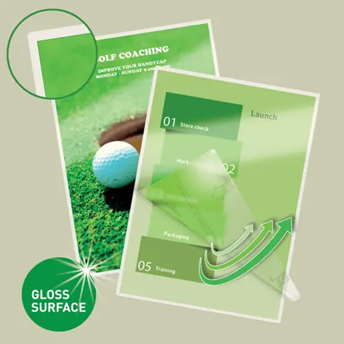 – Dlhodobá ochrana dokumentu pred nečistotou, tekutinou a vlhkosťou. Štandardná tuhosť laminácie.