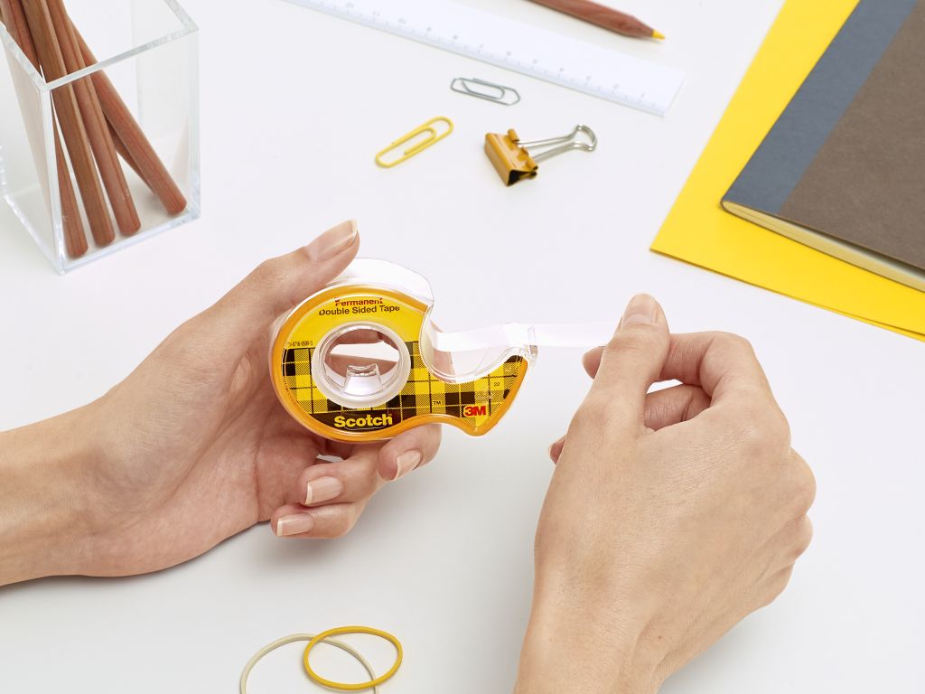 Lepiaca páska obojstranne pokrytá vrstvou lepidla, ľahko odvíjateľná a odrezateľná, odolná voči vlhkosti. Vhodná na spájanie papierov, fólií, ľahkej lepenky, plastových materiálov, montáž plagátov, textílií na zvislé povrchy. Dodávaná v dispenzore.