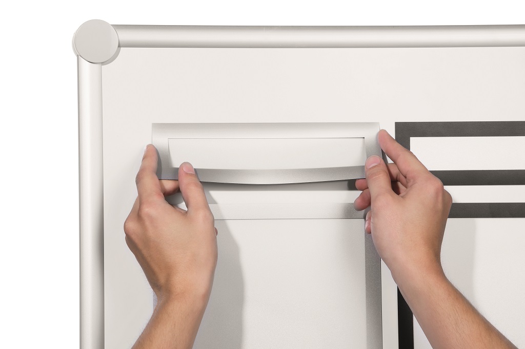 Informačný panel na titulky štruktúr informačných materiálov s magnetickou časťou na zadnej strane rámika na jednoduché a rýchle vkladanie informácie. Vonkajšie rozmery 236 × 66 mm, list na potlačenie 210 × 40 mm. Vhodný na hladké magnetické povrchy, napr. magnetickú tabuľu. Farba čierna. Balenie 5 ks.