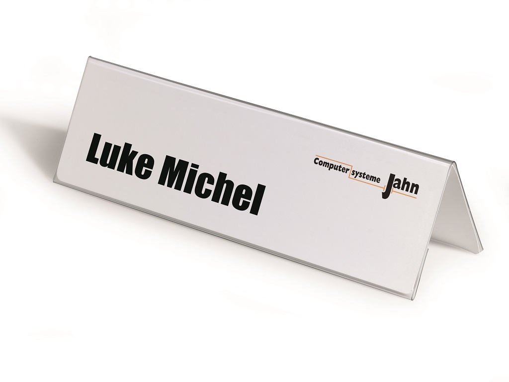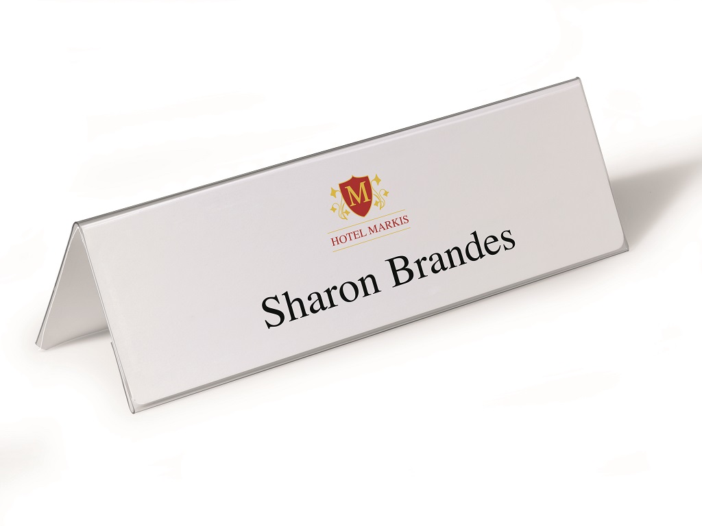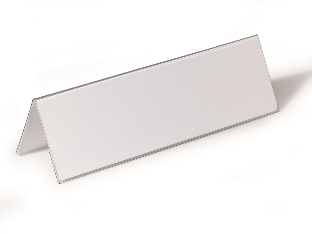 Obojstranne čitateľná stolová menovka z pevného PVC, vhodná na konferencie, recepčné pulty, ceny tovarov a popis produktov. Dodávaná s vymeniteľnou prázdnou kartou. Väčšie balenie 25 ks.