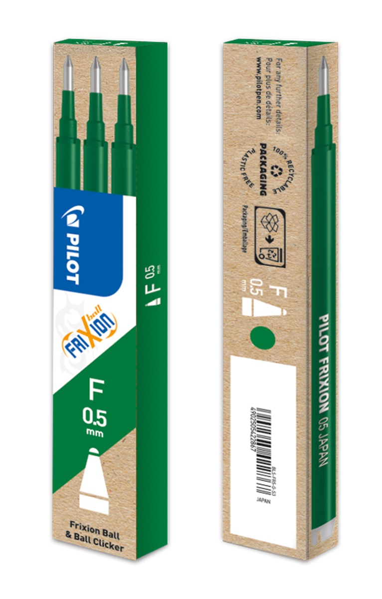 Náplň s prepisovateľným atramentom do rollerov Pilot FriXion Clickera FriXion Ball. V balení 3 ks. Gulička 0,5 mm.